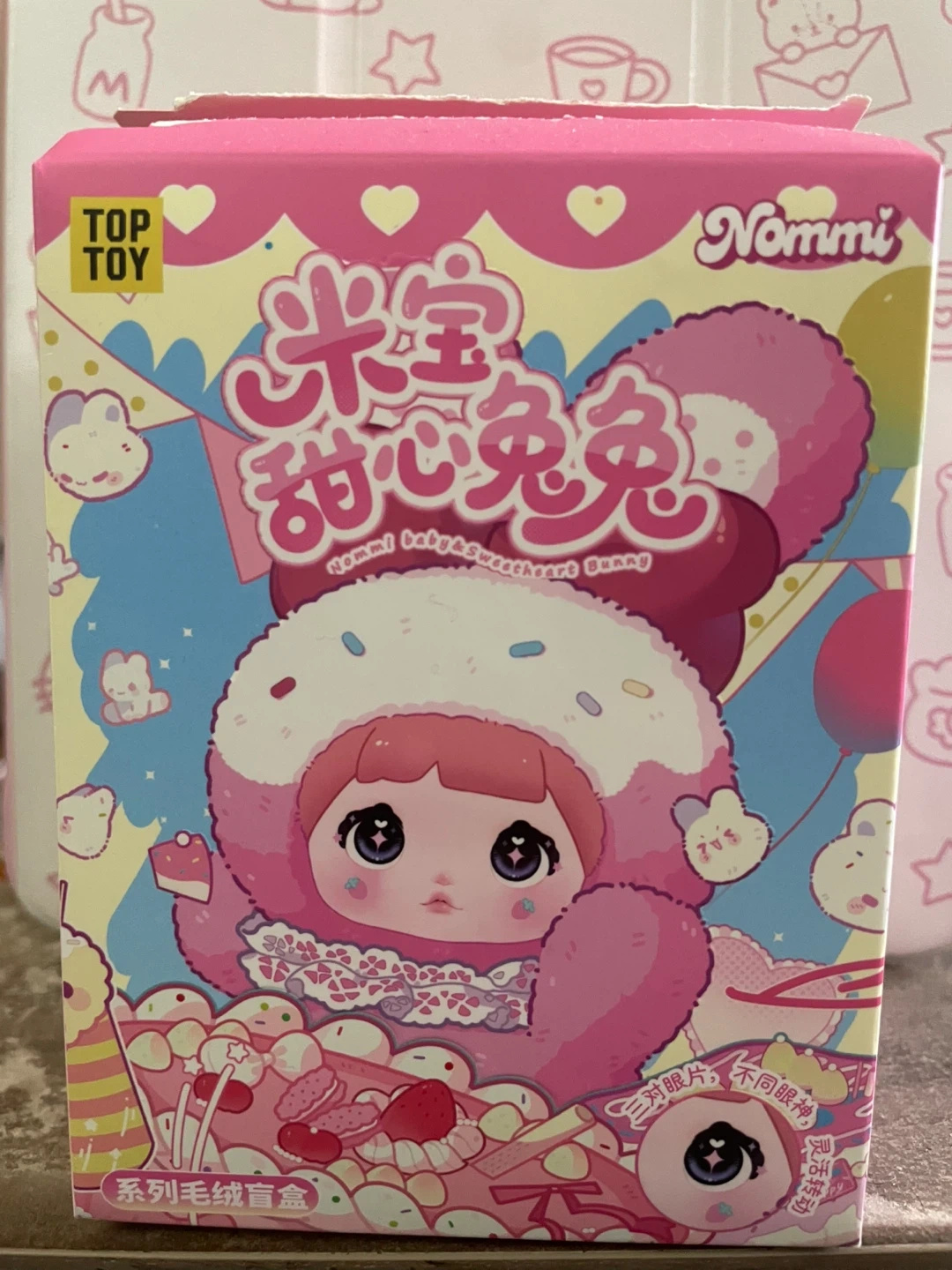 It's a Nommi Baby Sweetheart Bunny blind box collectible. Suitable for ages 15 and up. Includes original box and packaging.