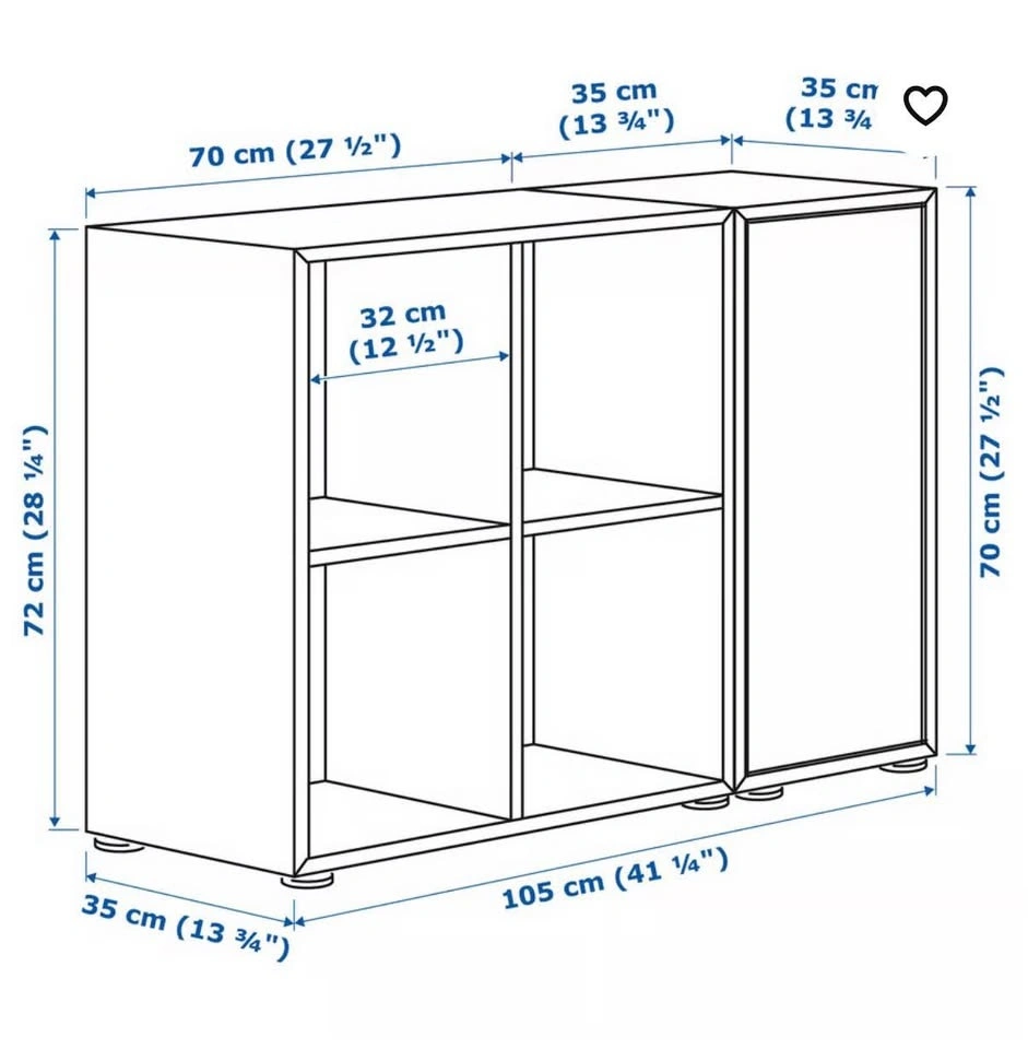 Selling a white IKEA storage unit in great condition. Includes: 2 white storage bins. Dimensions are in the photos. Good overall, minor wear inside (not visible when used). Asking: $120. Pick up in Mimico.