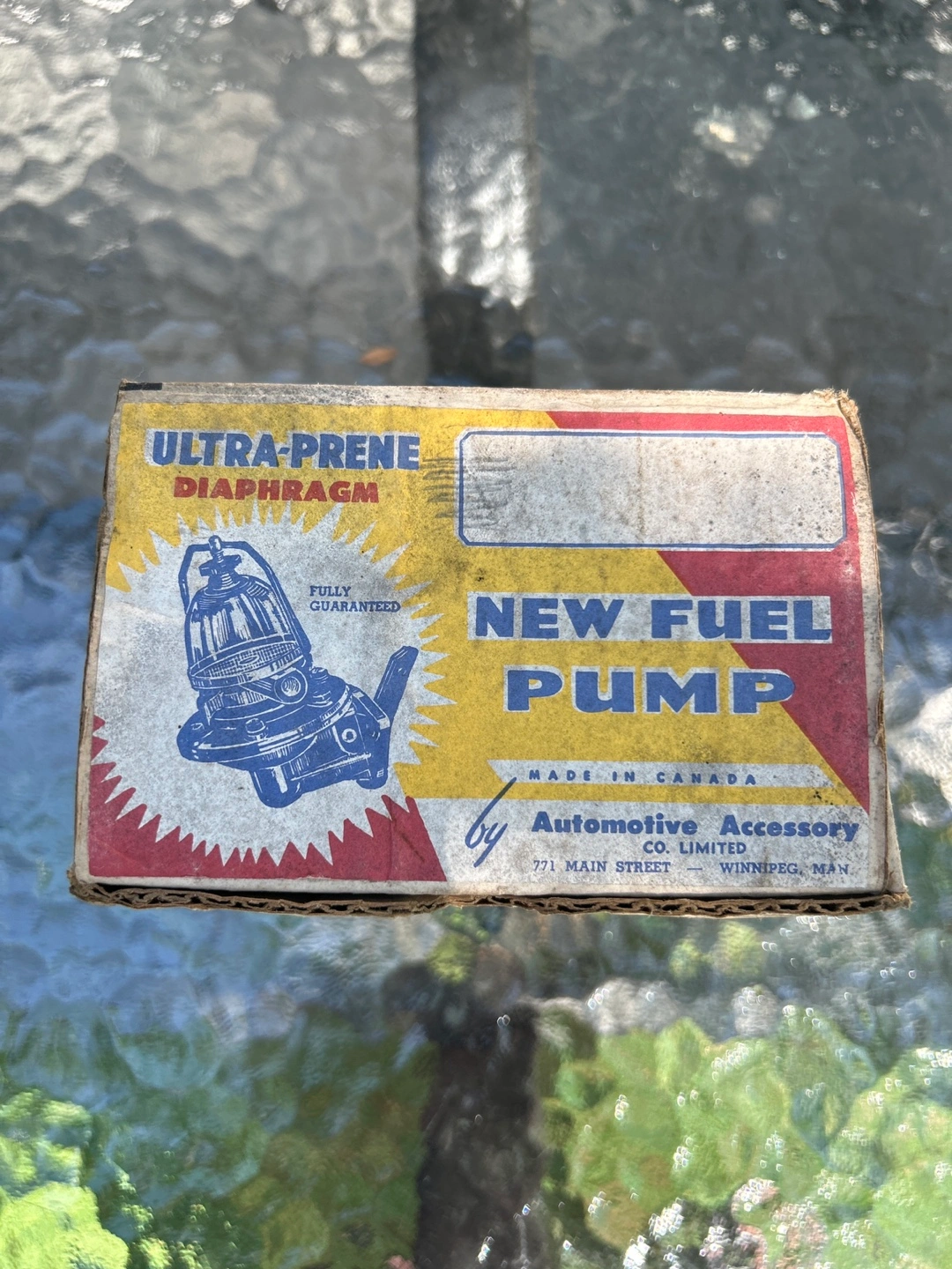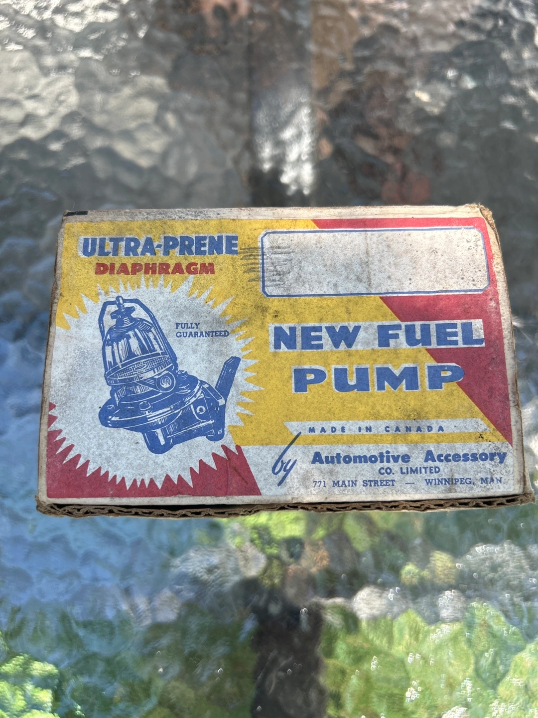 Selling a brand new fuel pump still in its original box! It's made in Canada by Automotive Accessory Co. Limited in Winnipeg. The box is also marked as being made by Domtar Packaging Limited, also in Winnipeg.