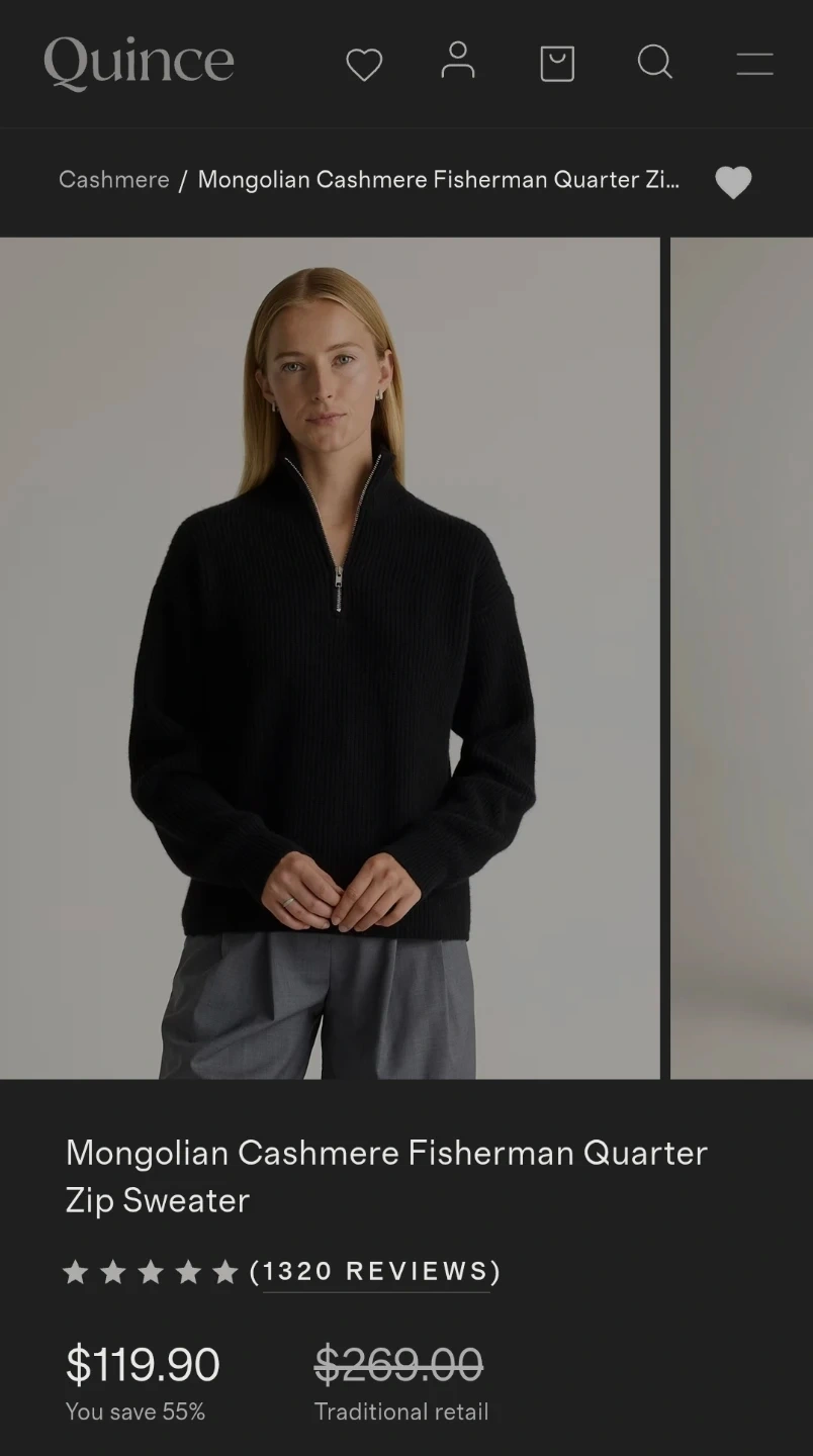 Quince Mongolian Cashmere Fisherman Quarter Zip Sweater