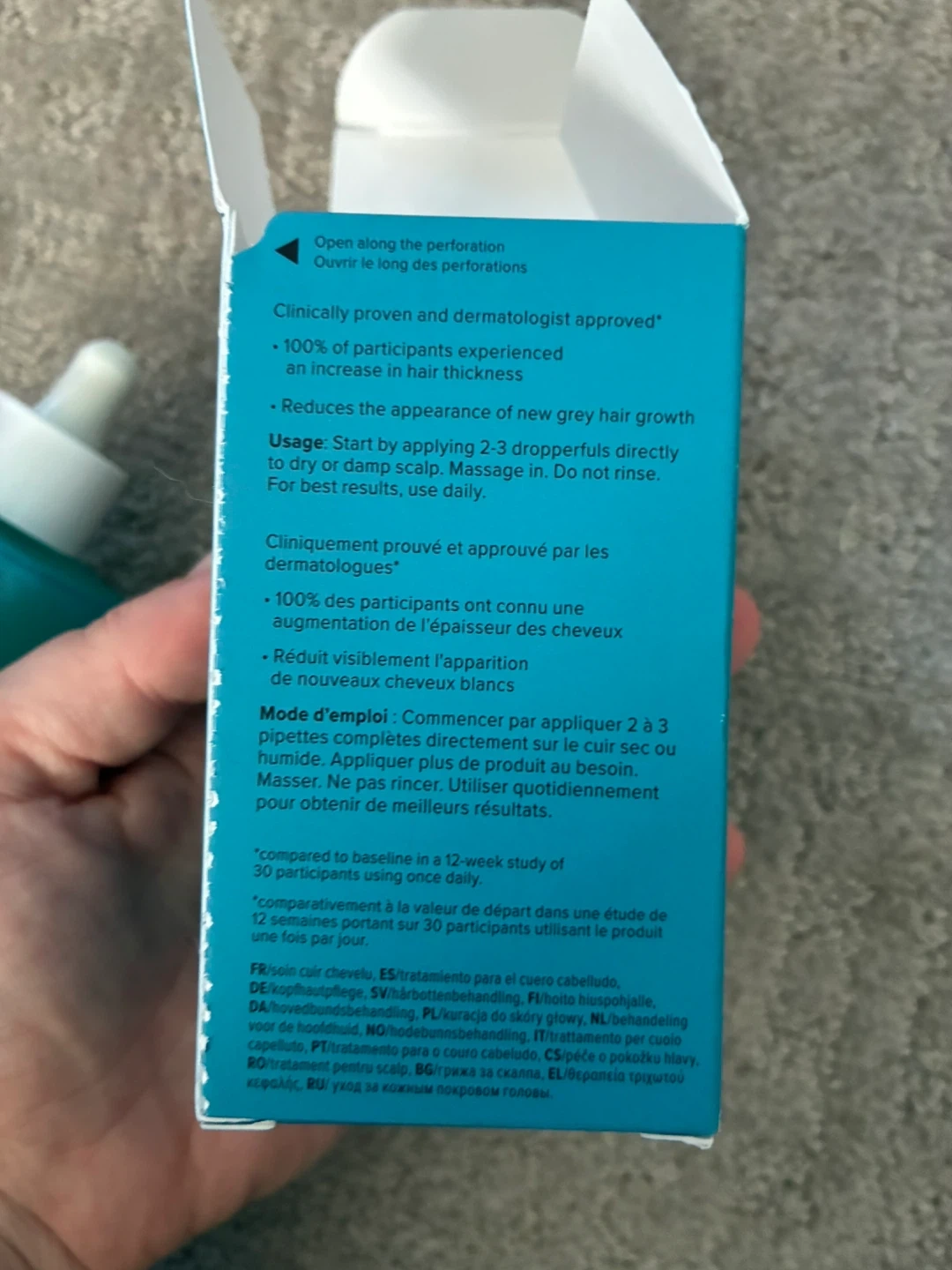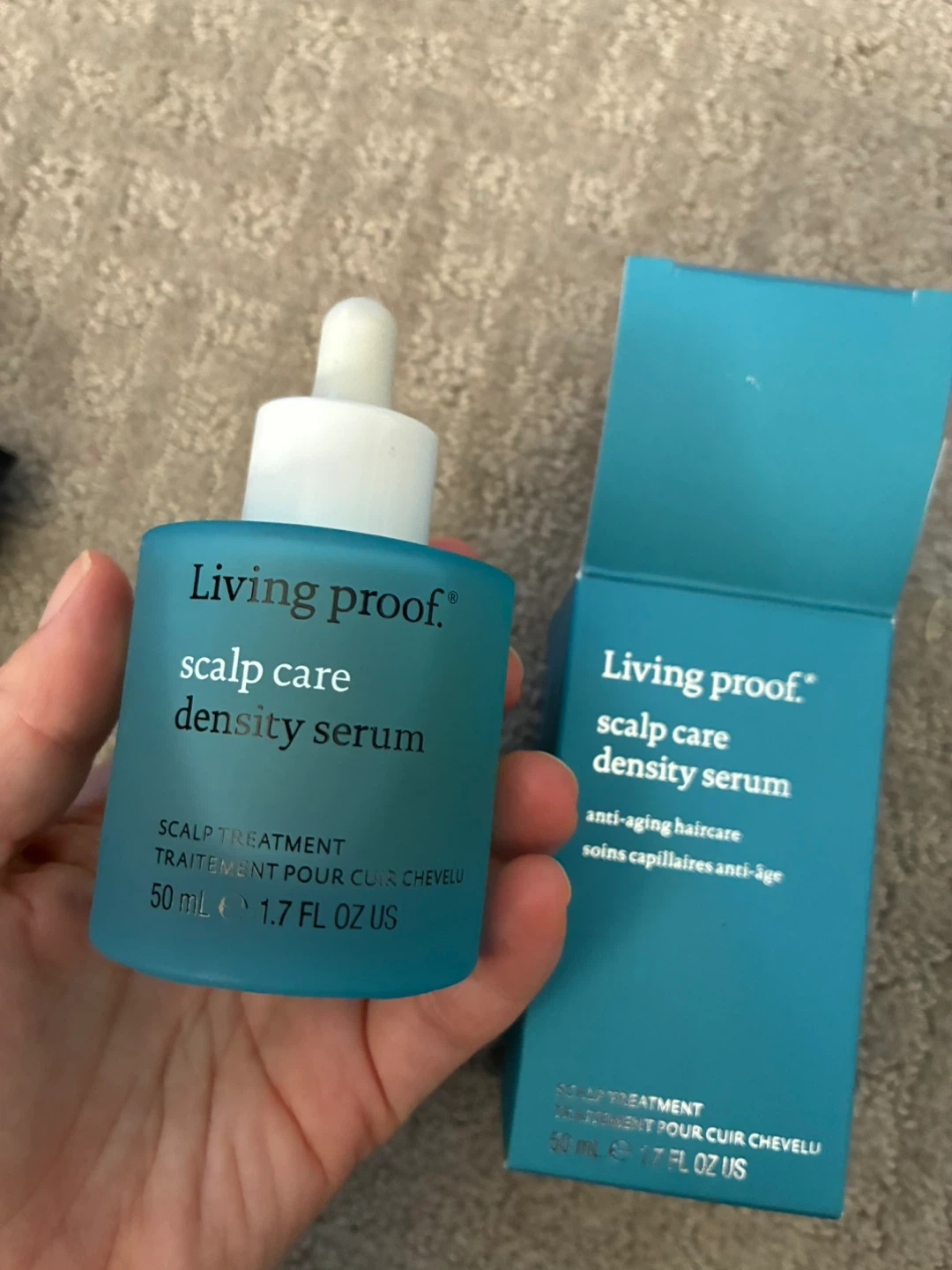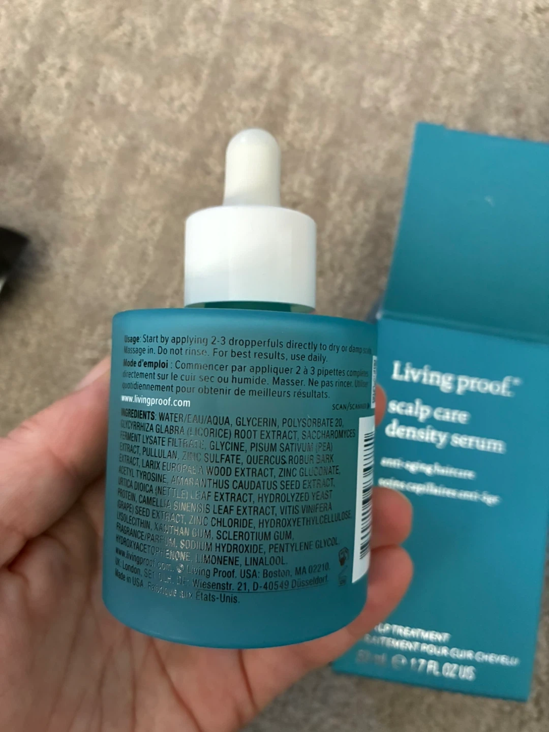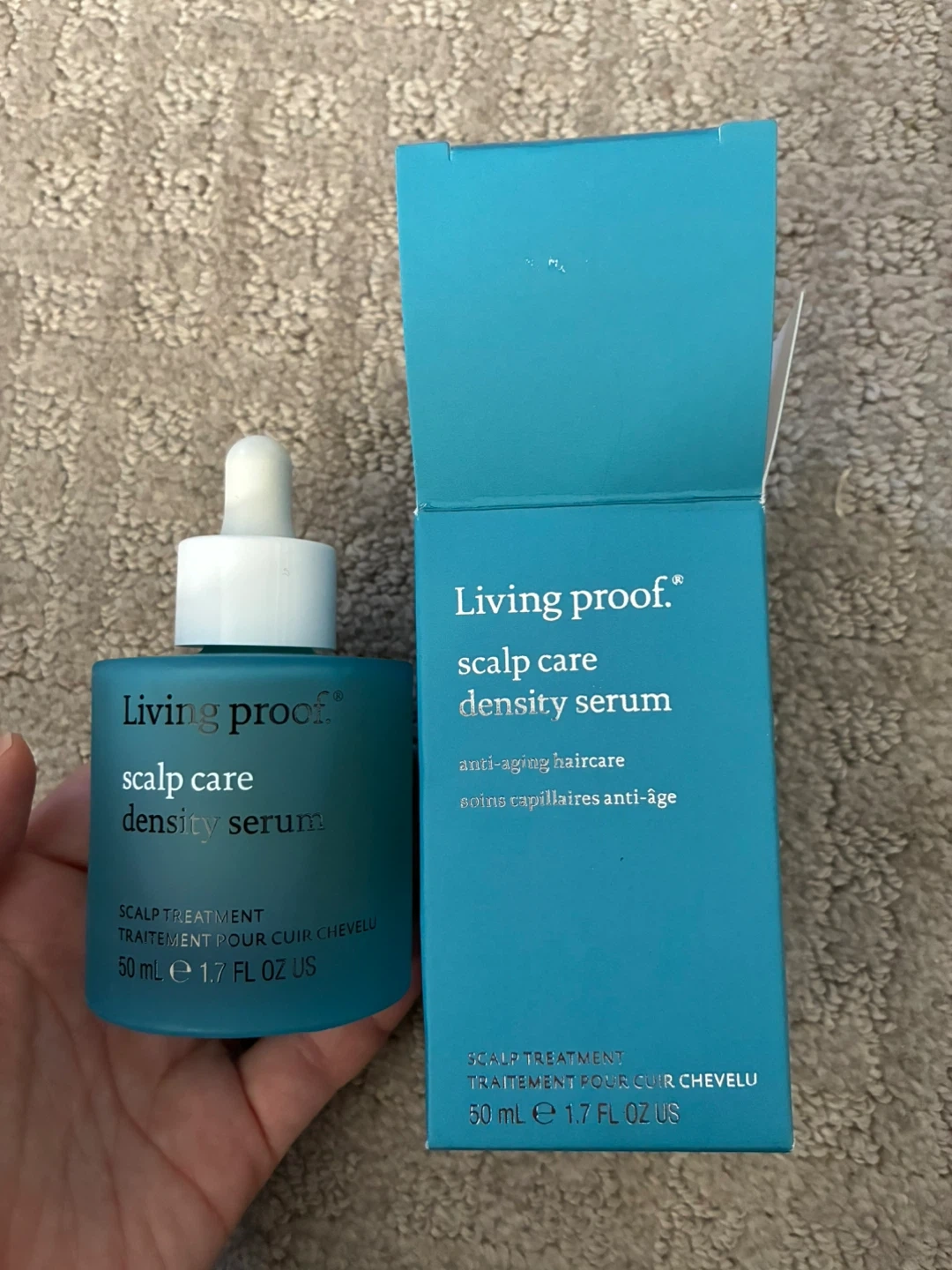 Living Proof scalp care density serum for anti-aging haircare. This scalp treatment comes in a 50ml bottle. It's clinically proven and dermatologist approved to increase hair thickness and reduce the appearance of new grey hair.