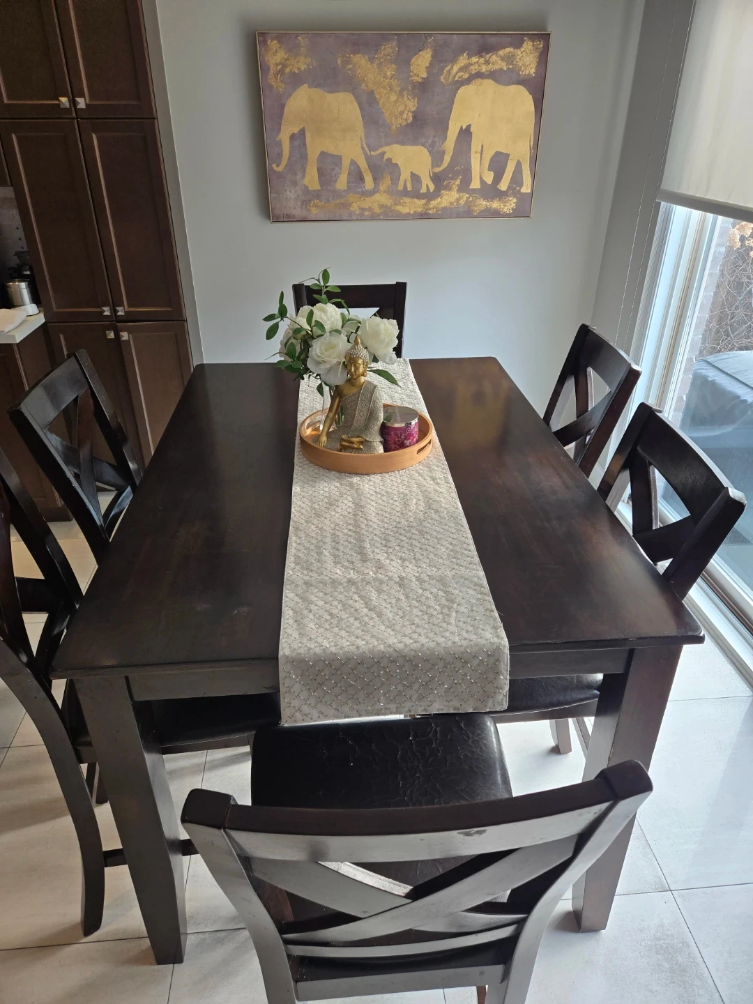 Dark Wood Dining Table with 6 chairs