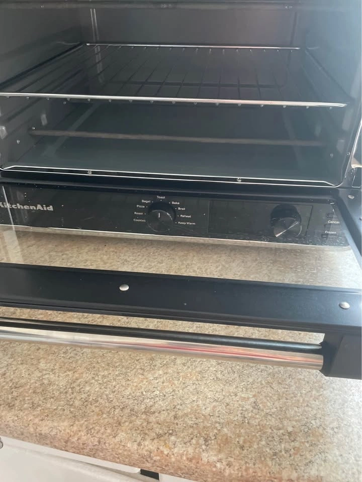 Selling my KitchenAid Digital Countertop Oven (Model: KCO211BM). This is an incredible, high-end oven that fits a full 9x13 inch baking pan, perfect for everything from roasting a whole chicken to baking cookies or a large pizza. Features: 9 Preset Functions (Bake, Broil, Toast, Warm, Reheat, Bagel, Pizza, Cookies, and Roast), Frozen Option, Digital Display, Non-Stick Interior, and Sleek Black Matte Design. What’s Included: KitchenAid Digital Oven, Original 9x13-inch Baking Pan, Original Chrome Broiling/Grill Rack, Removable Drip and Crumb Tray, and Removable Metal Rack. Condition: Excellent, fully functional, and very clean. Retails for $270 - $300 + tax. Pickup in Dundas, University Gardens area.