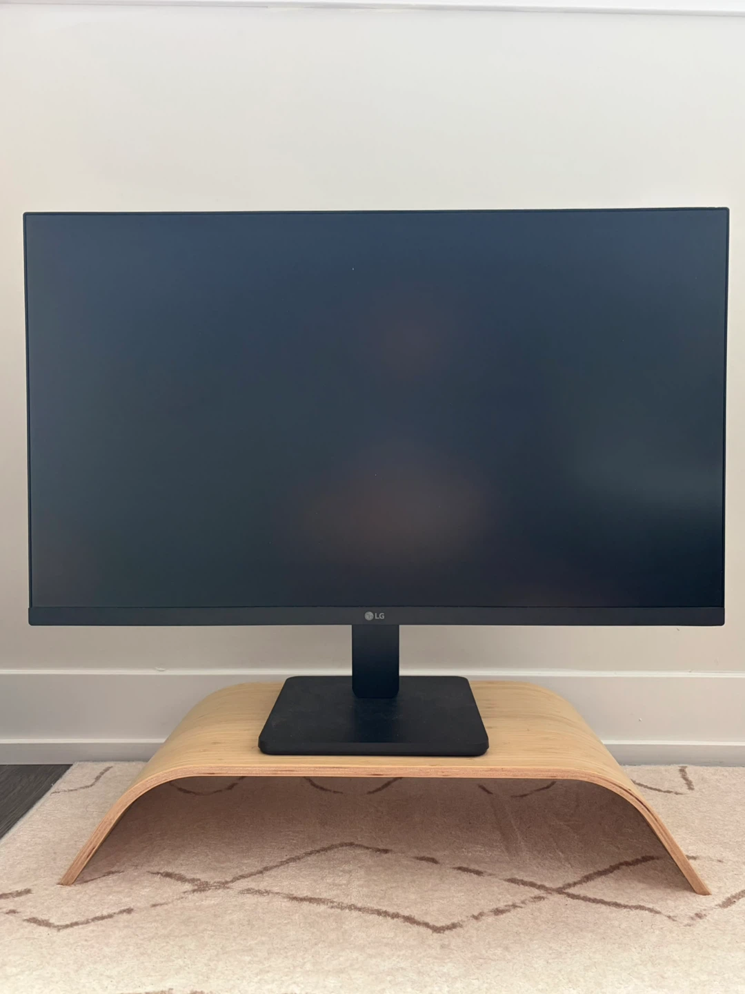 Selling an IKEA monitor stand in great condition! It's perfect for raising your monitor to a more comfortable viewing height and freeing up desk space underneath. (27” monitor shown)