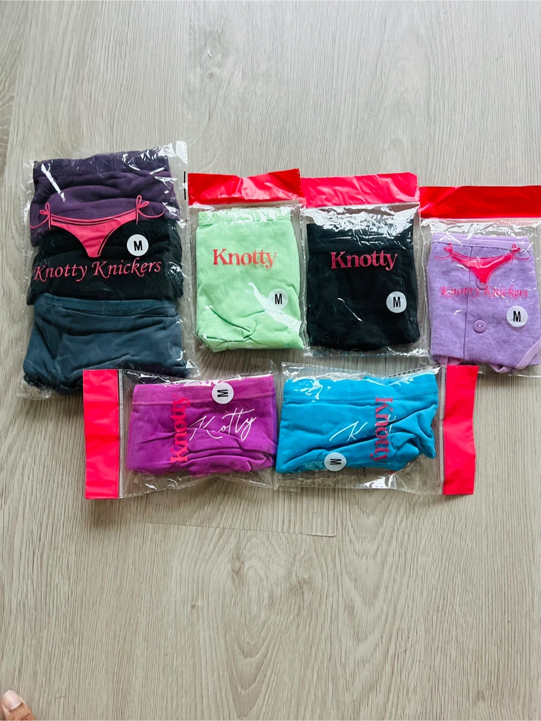 Get a set of 8 comfy Knotty briefs in assorted colours. All items are size medium. They're made with soft, breathable fabric for everyday wear and perfect for a time of the month.
