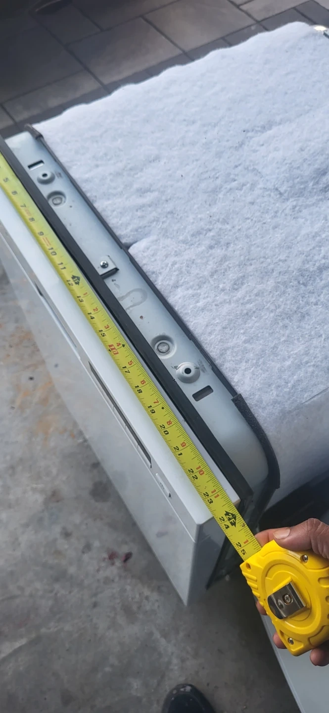 This is a white LG Direct Drive dishwasher. It measures 24 inches wide and 34 inches tall. It's suitable for a standard kitchen installation.