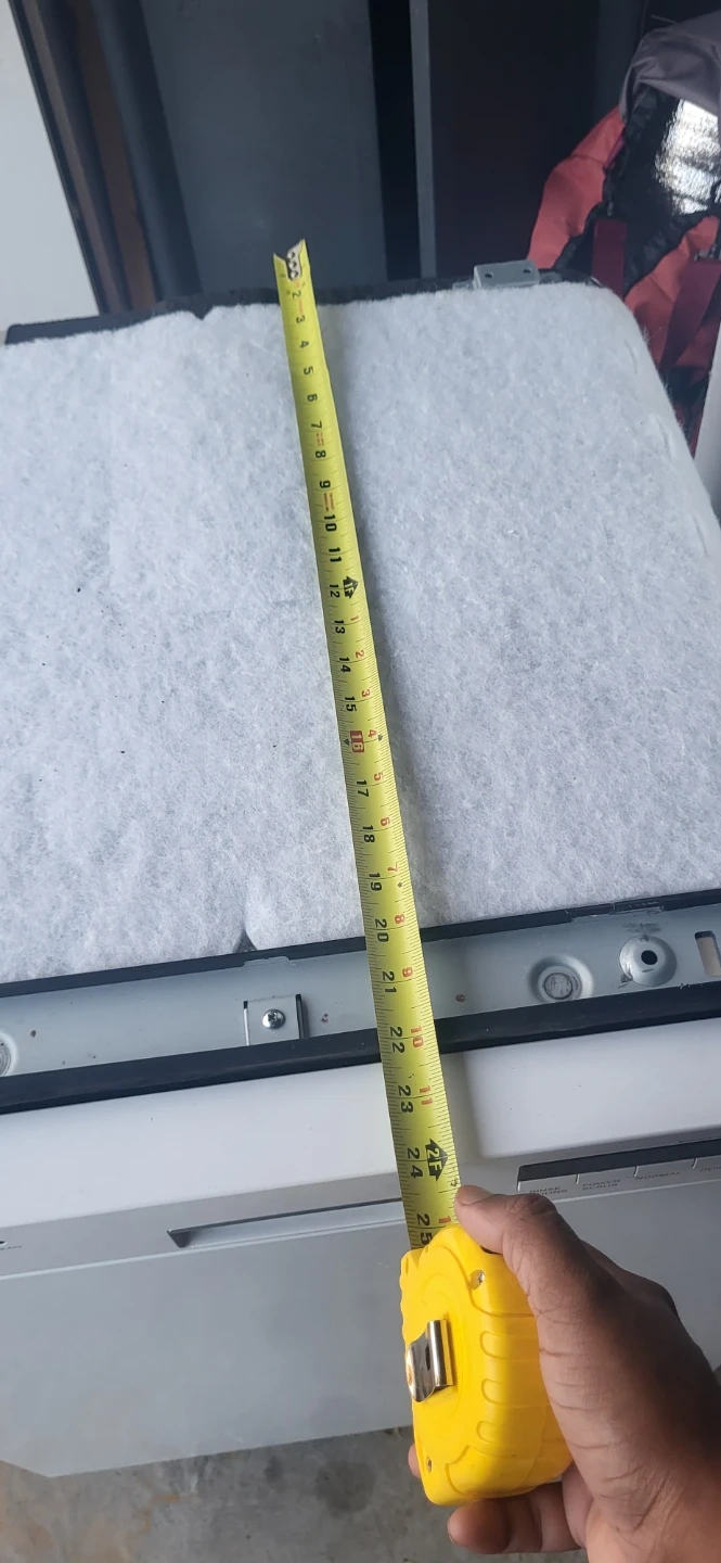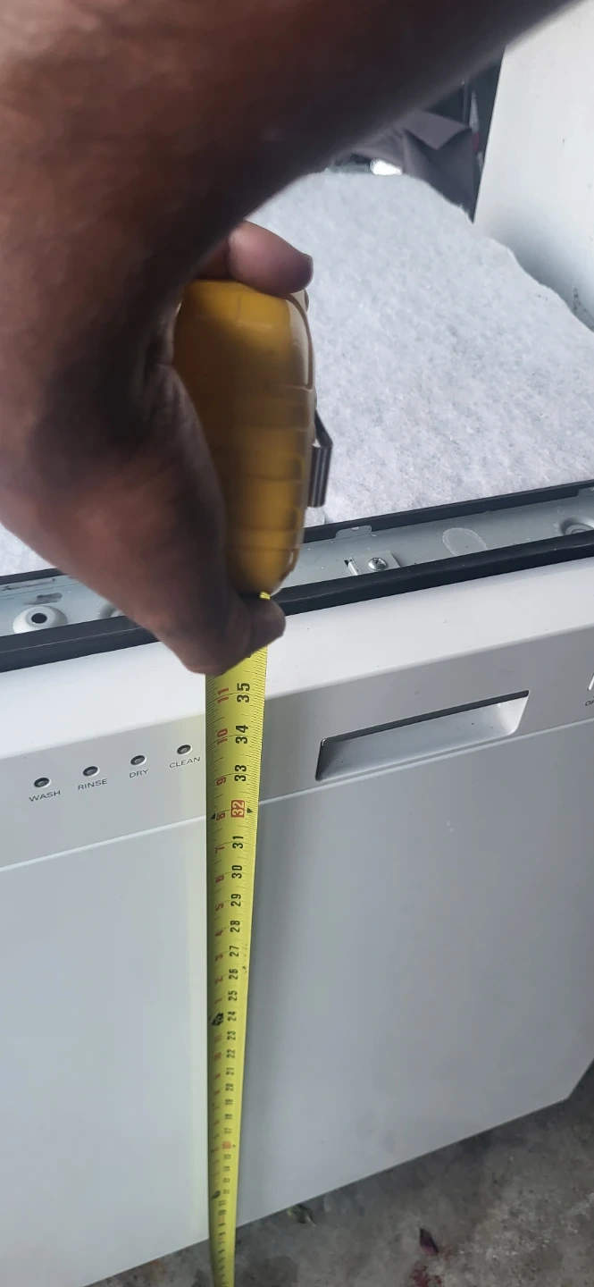 This is a white LG Direct Drive dishwasher. It measures 24 inches wide and 34 inches tall. It's suitable for a standard kitchen installation.