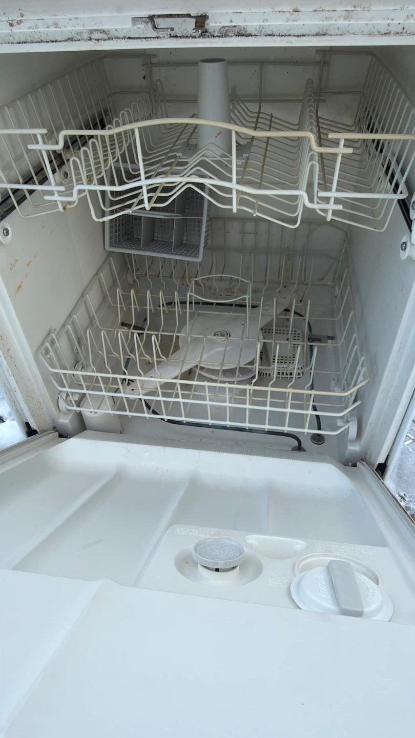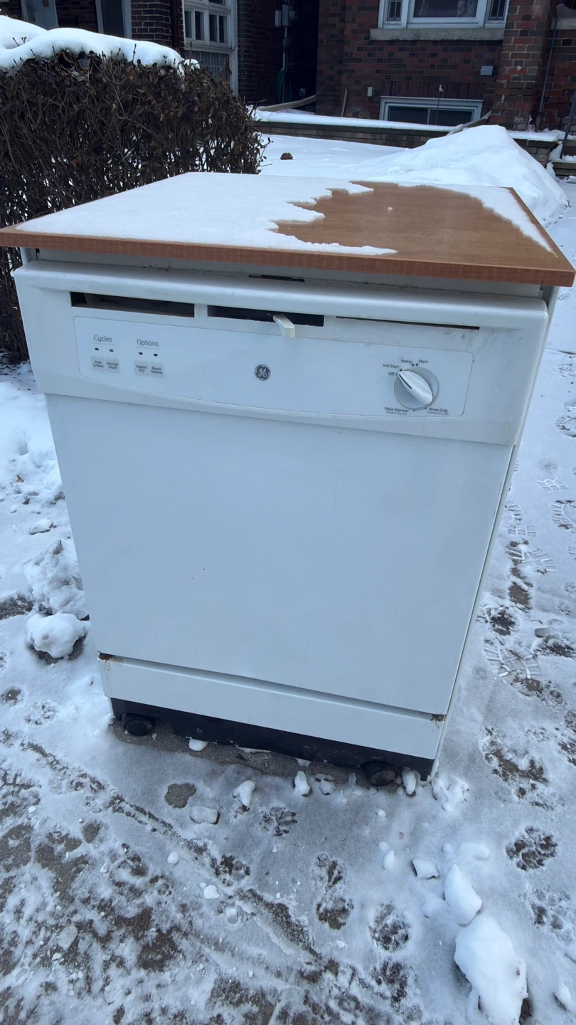 Selling a GE dishwasher. It's white with a wooden top. It has cycles and options available. I got it for $50 off Facebook marketplace but it can’t fit down my stair. So selling it $25.