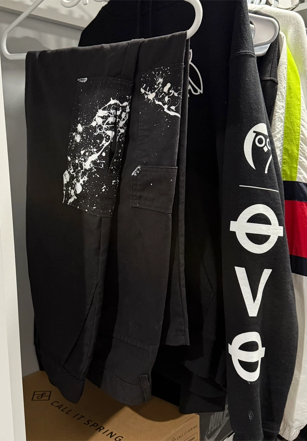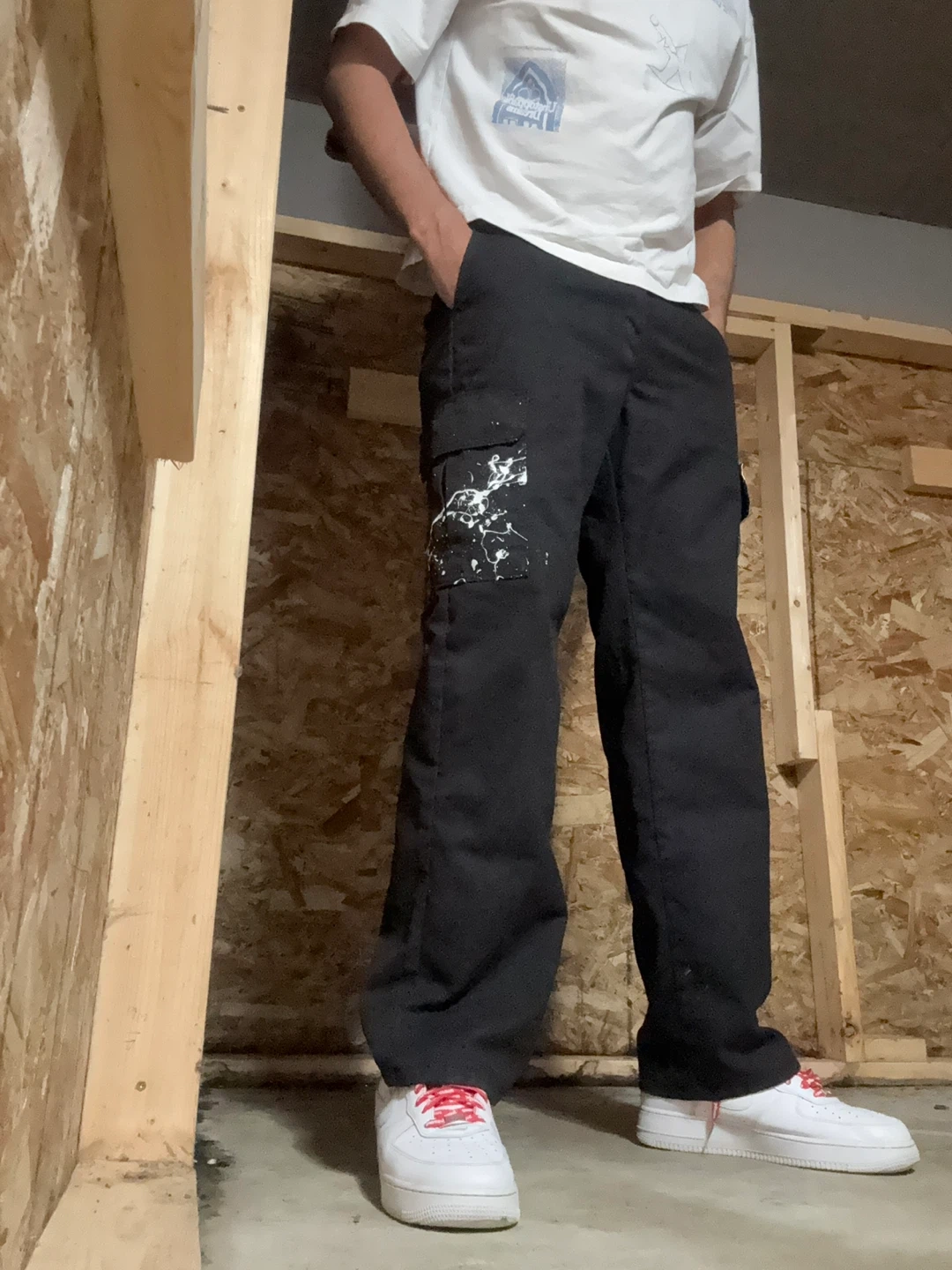 These custom cargo pants feature a stunning paint splatter design. I’ve received tons of compliments wearing this style.