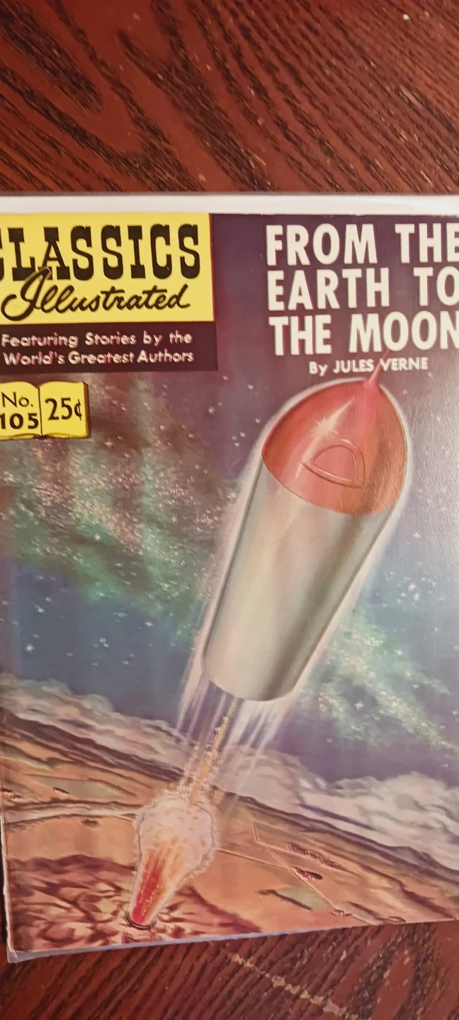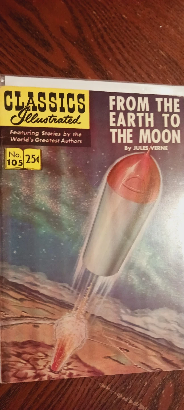 Collectible Vintage Comic Book. Classic Illustrated comic book issue #105, "From the Earth to the Moon" by Jules Verne. Features stories by the World's Greatest Authors. Published by Gilberton Company, Inc. Excellent condition. ALL MY PRICES ARE NEGOTIABLE !!
