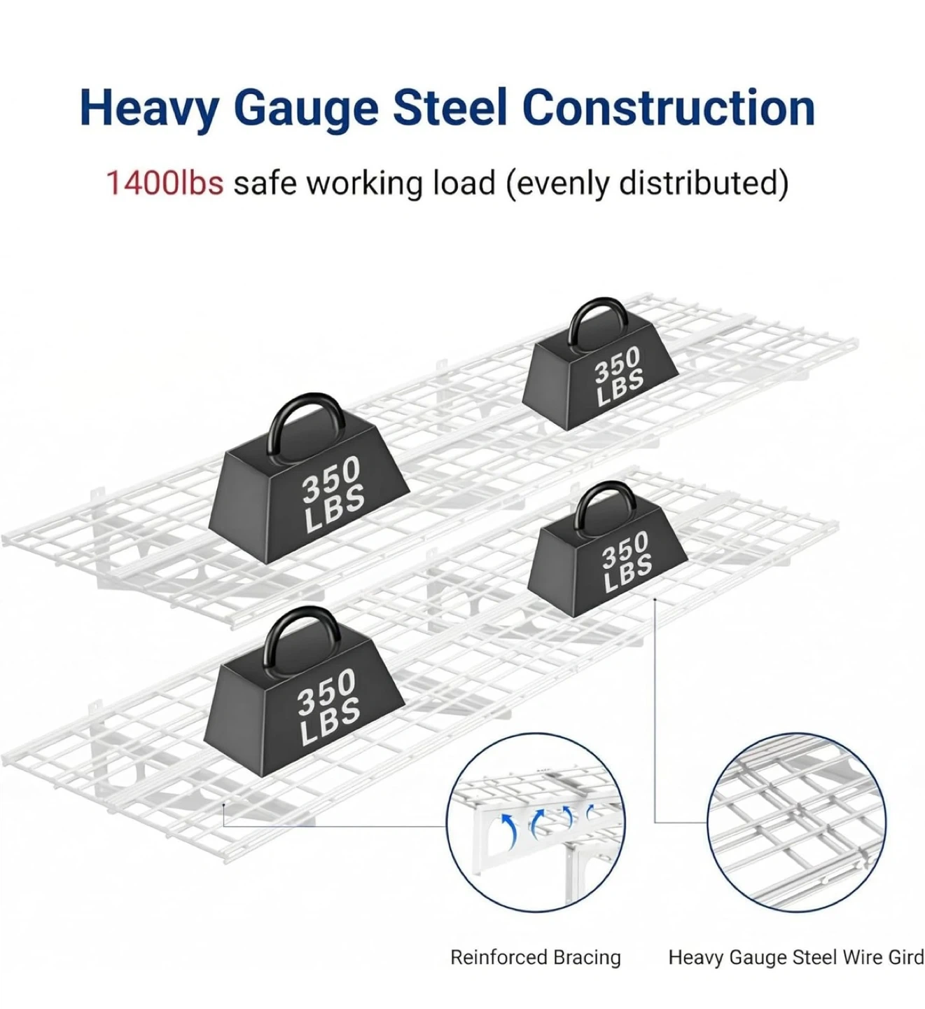 Ideal for organizing tools, storage bins, boxes, and seasonal items.