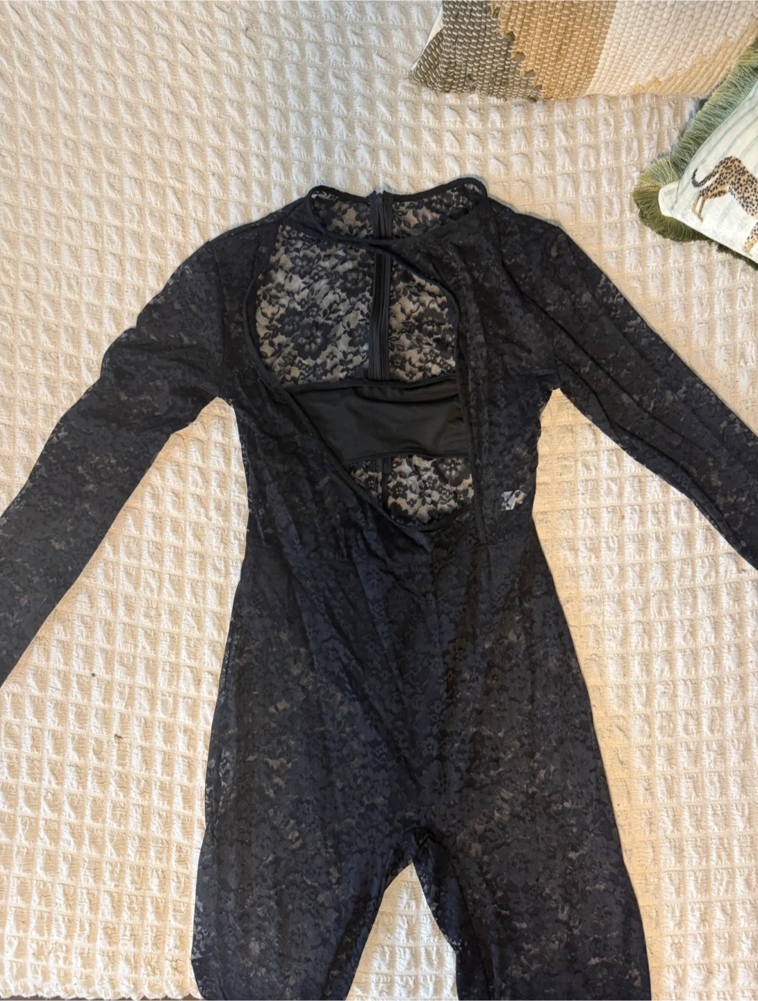 Buy & SellLace JumpsuitLace Jumpsuit$6Sheer black lace full-length jumpsuit with a cutout detail at the neckline and an open back.ConditionNewSizeSWHERE TO MEETDownTown City PlaceView MapSELLERverifiedSamaCityPlace1336 reviews1 chats·5 favorites·271 viewsSEND CHAT TO SELLERHi Sama! I’m interested in your listing.Hi Sama! I’m interested in your listing.Get the Karrot app to chatSign In to chat