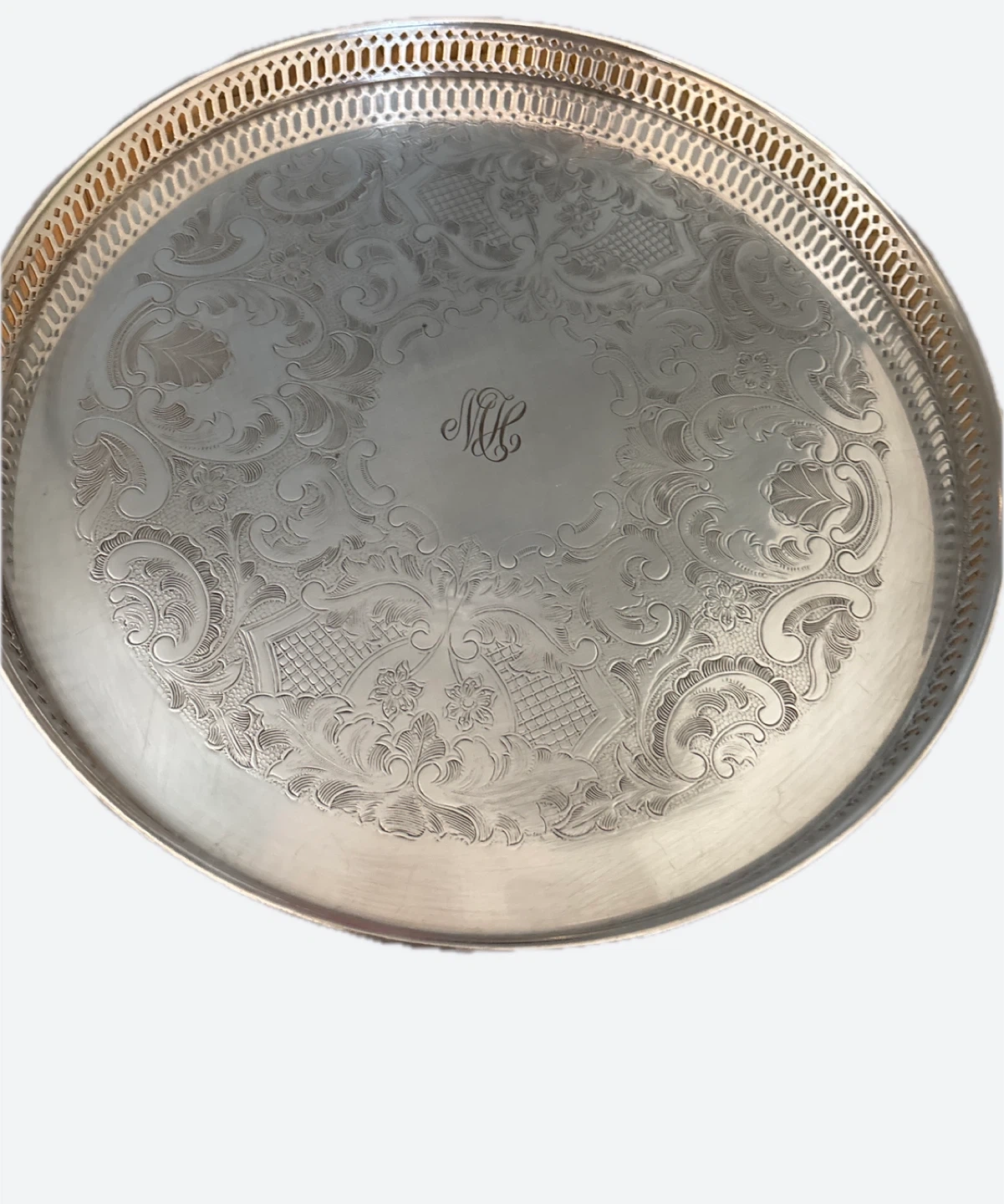 Beautiful Coronet Plate EP Copper serving tray with a stunning ornate etched design and decorative edge β¨