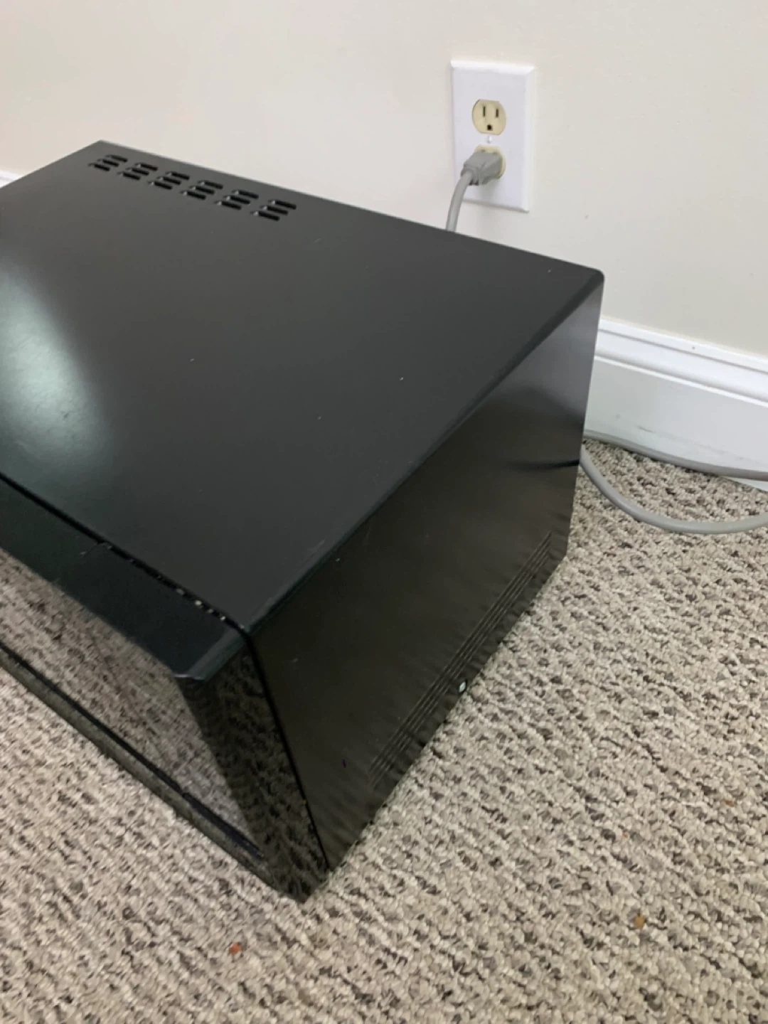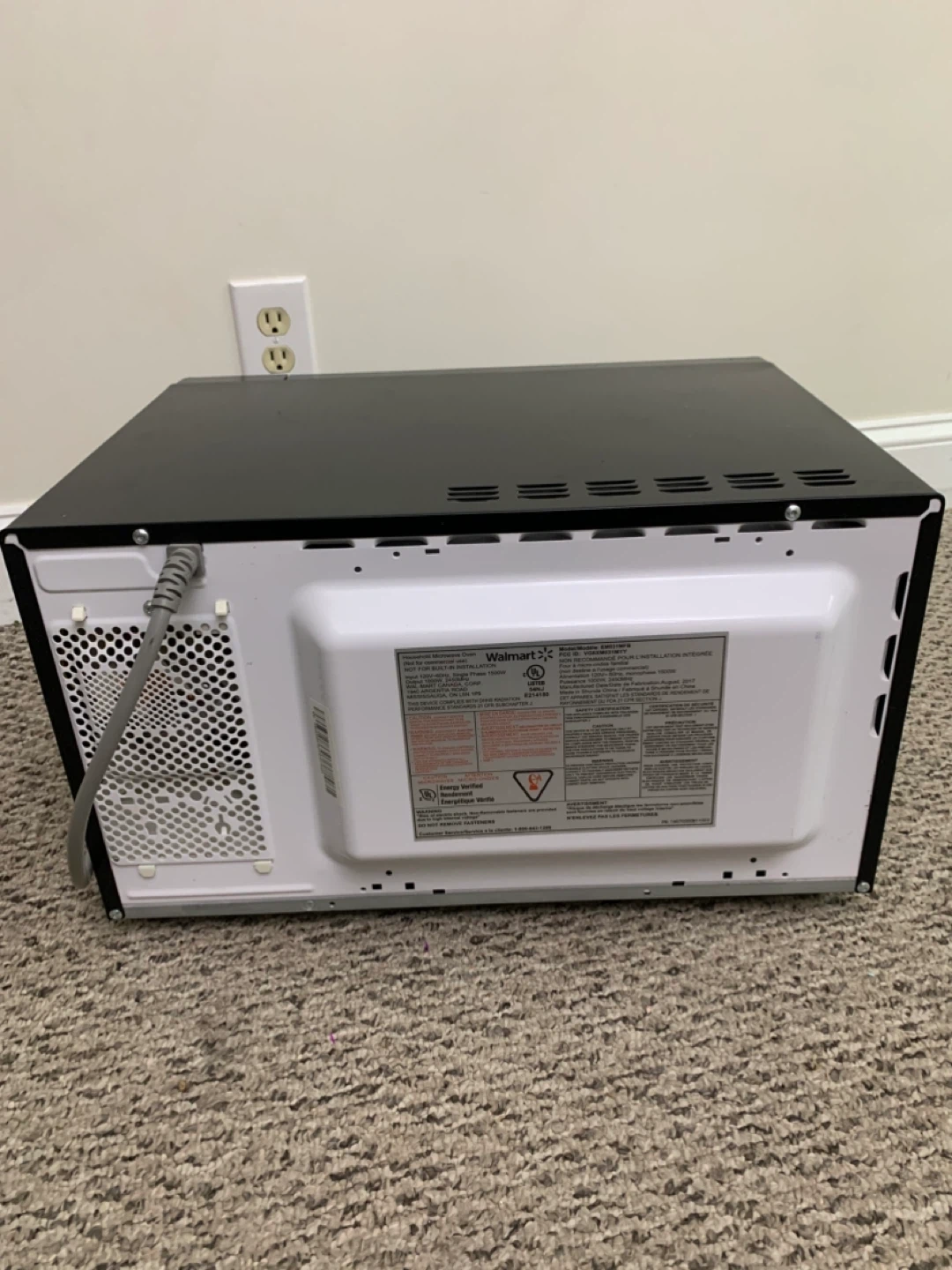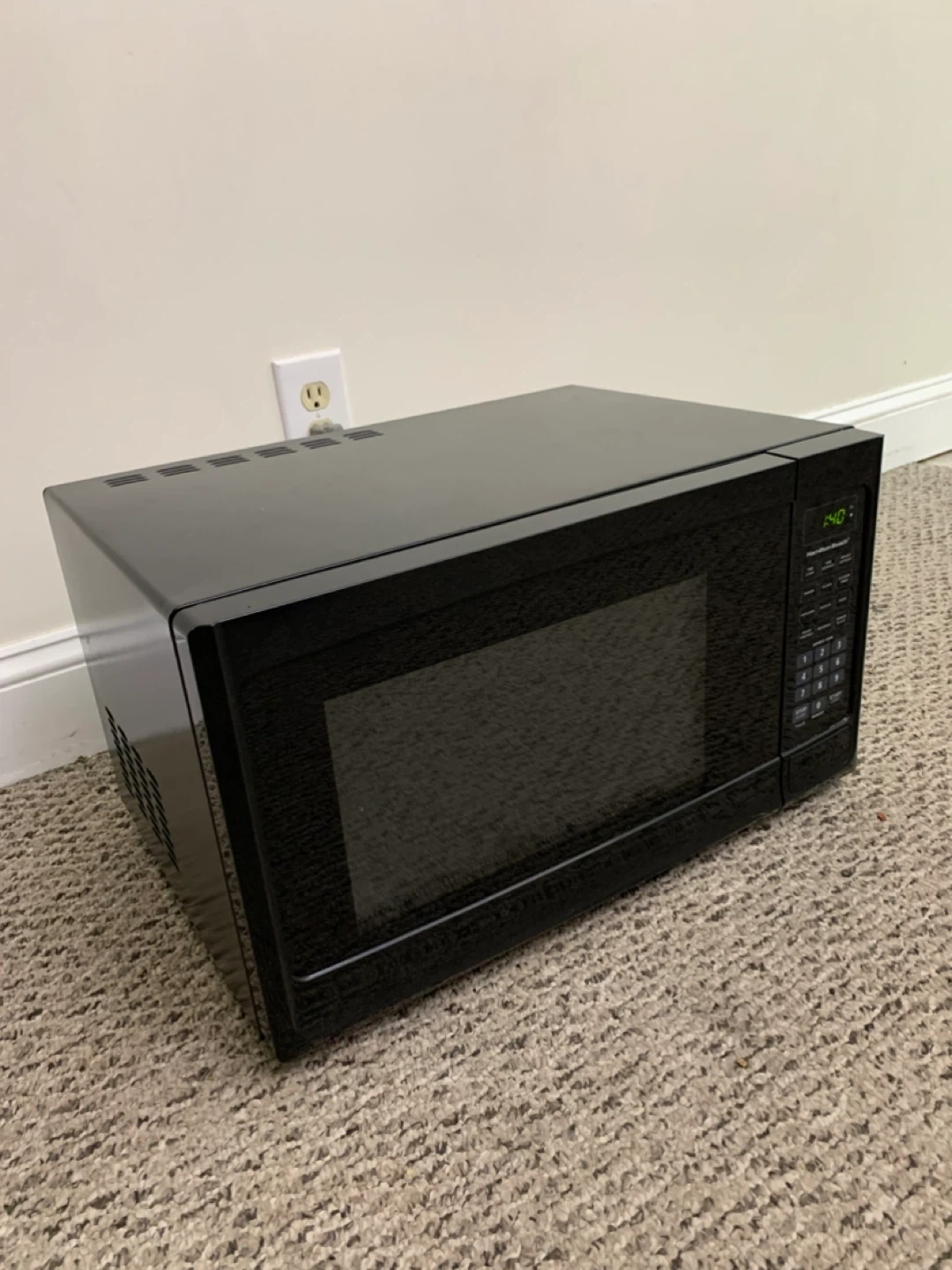 This is a black microwave. Mode number in photos. It includes a glass turntable. This microwave is great for quickly heating up leftovers or preparing simple meals.
