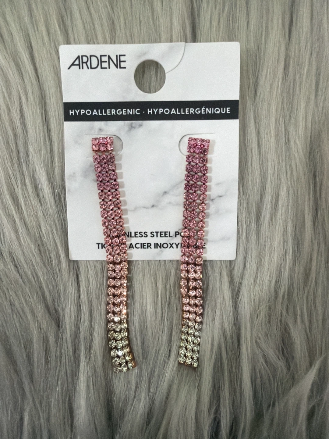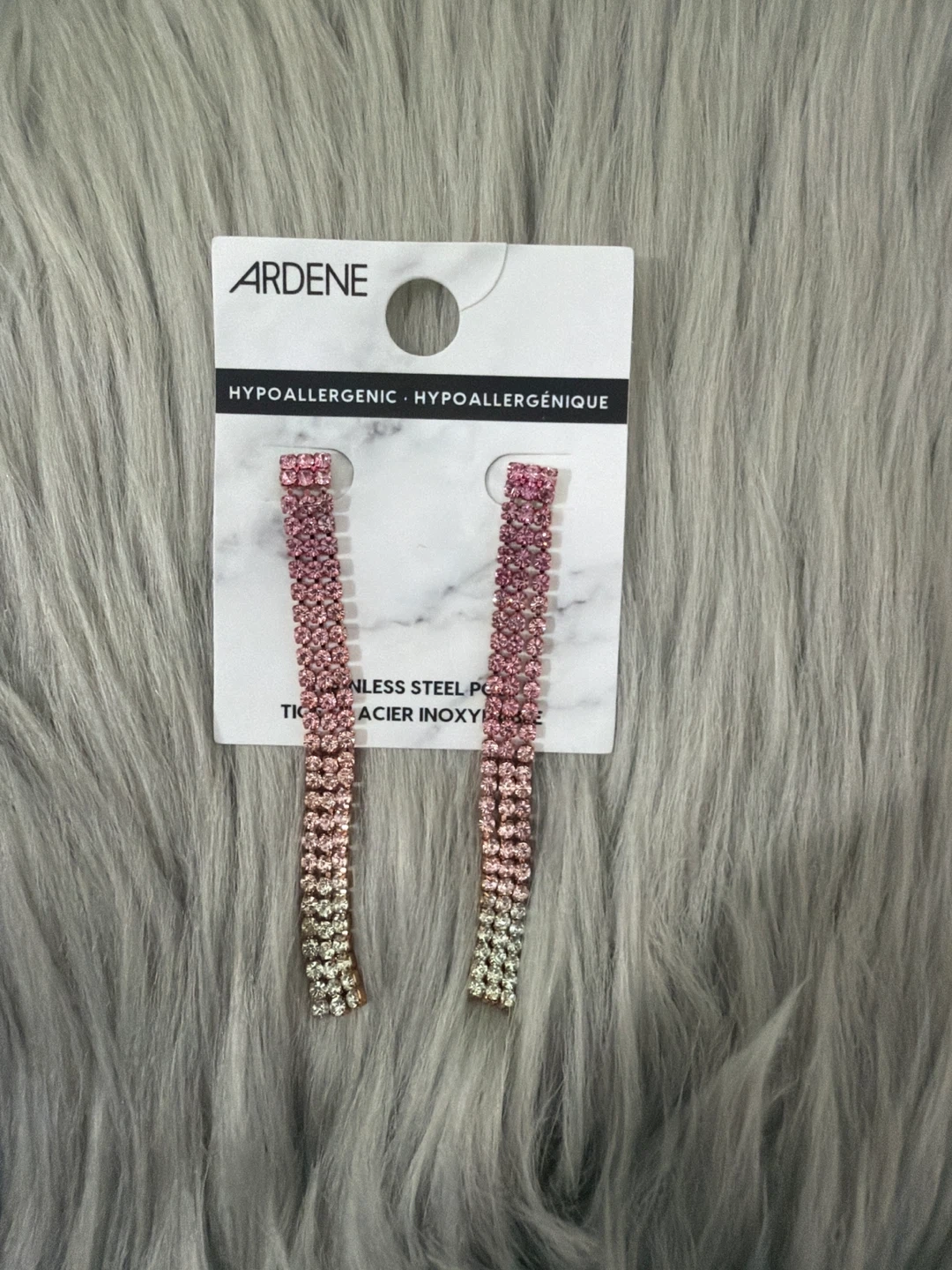 Ardene dangle earrings in a pink to silver ombre colour. Hypoallergenic. Stainless steel posts.