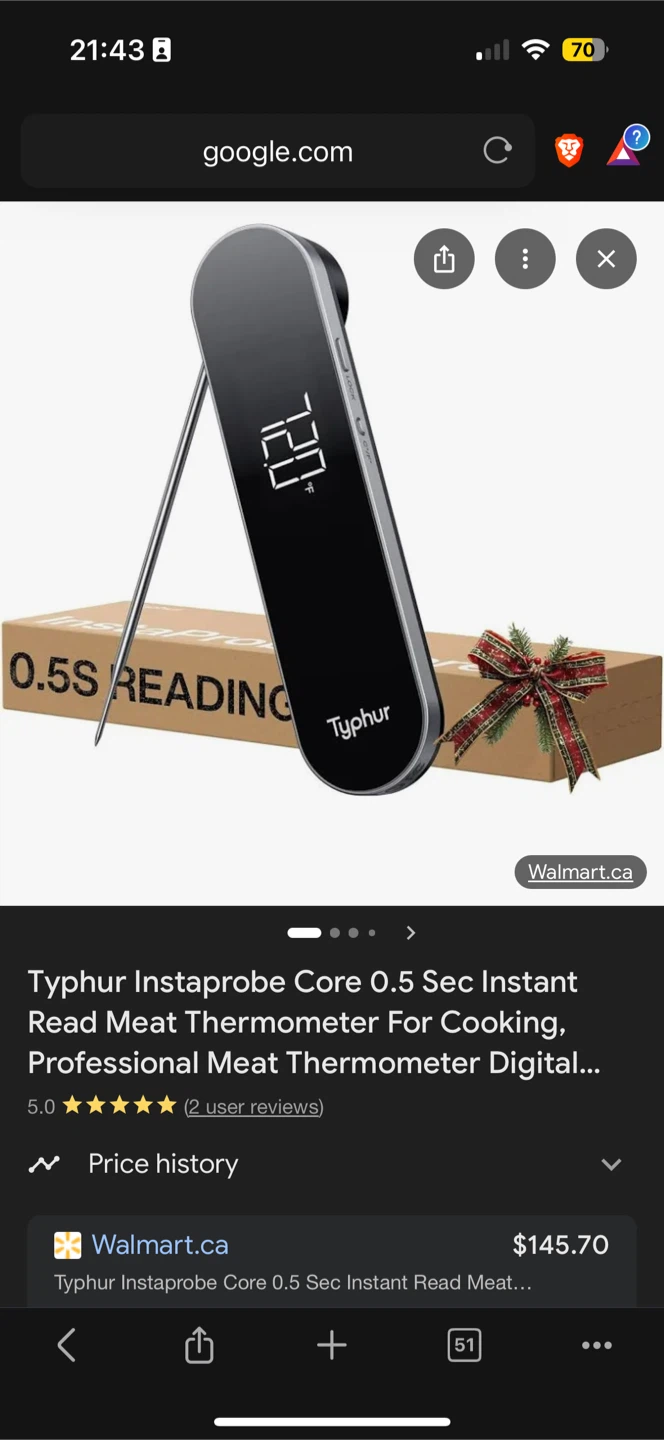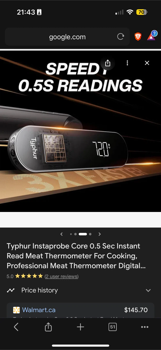 Selling a Typhur Instaprobe Core instant read meat thermometer. This thermometer is perfect for cooking and is a professional-grade digital meat thermometer. Retails for $145.70+ (166) at Walmart.
