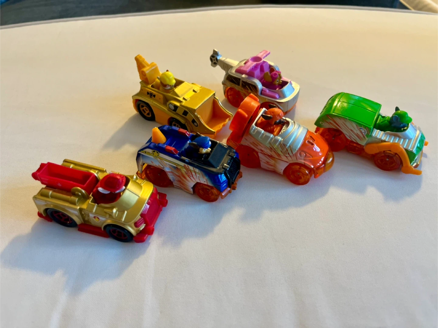 A set of six Paw Patrol toy vehicles. Includes various pup characters and their vehicles. These are fun for imaginative play and your Paw Patrol fan! See link below for more pictures and a detailed description.