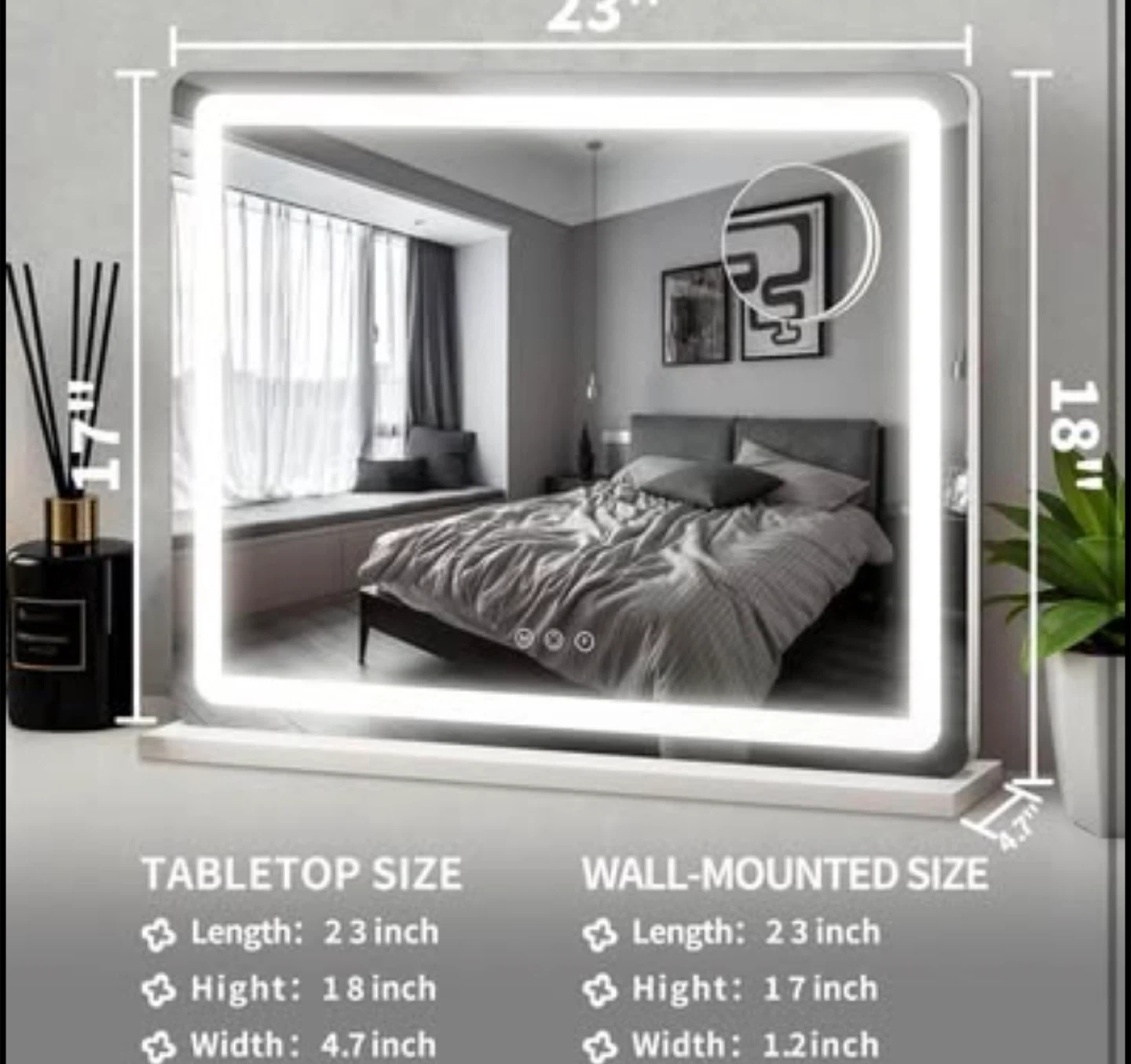 23”x18” Inch Lights, LED Mirror with Touch Control - Large Makeup Mirror for Dressing usb plug Room (Wall/Tabletop Mount)
