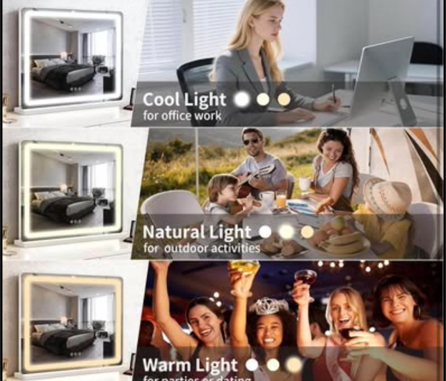 Lighted Vanity Mirror 23" x 18" - Dimmable, 3 Color Modes