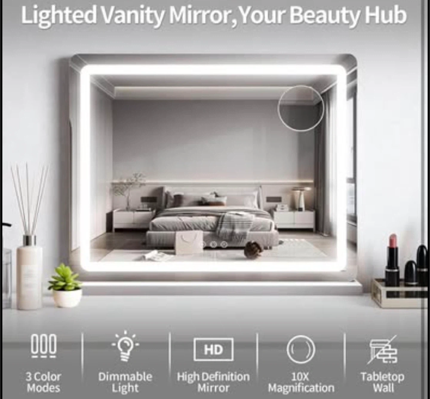 Lighted Vanity Mirror 23" x 18" - Dimmable, 3 Color Modes