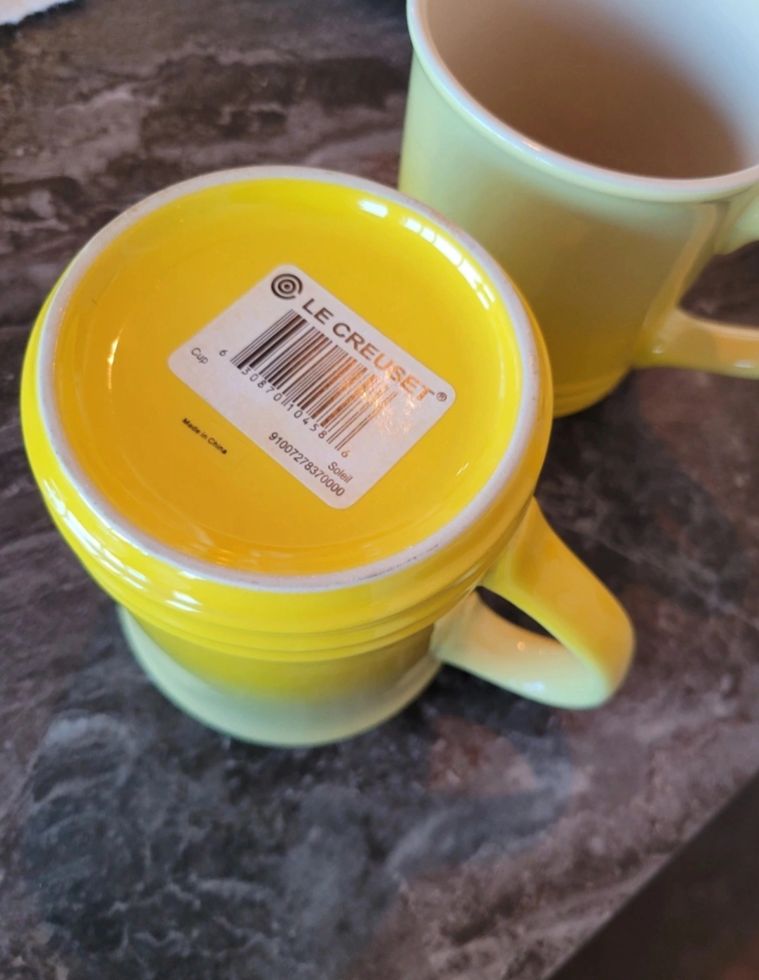 Selling a Le Creuset mug in the Soleil yellow and red colour. It's brand new and ready for a new home! Perfect for enjoying your morning coffee or tea. This mug is sure to brighten up your day with its cheerful colour