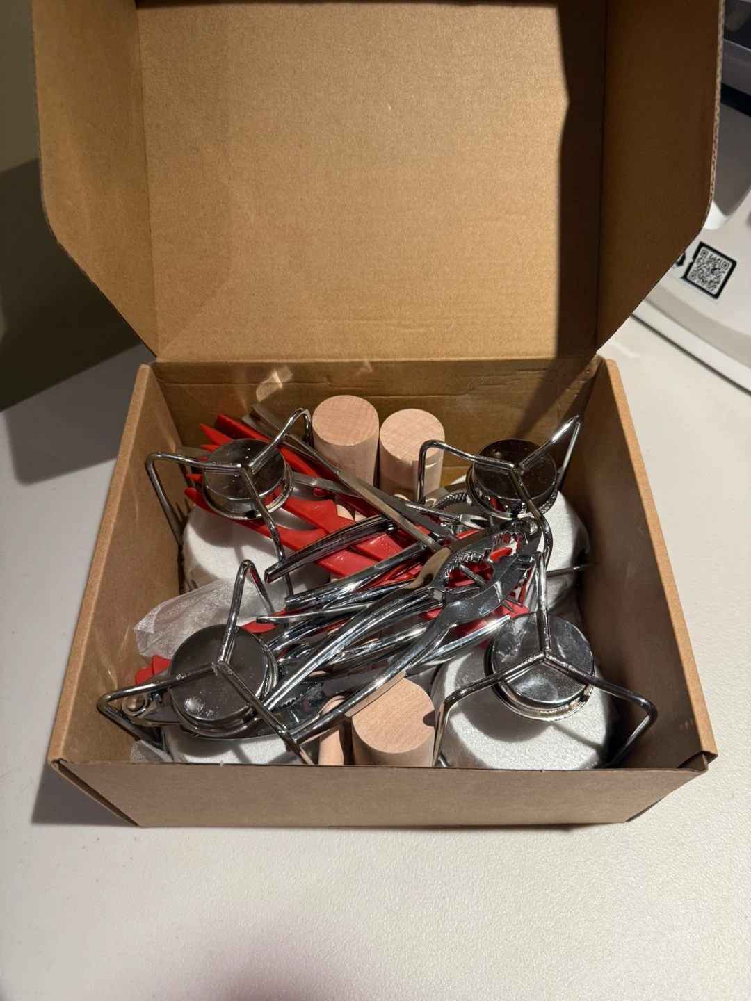Here's a crab cracker and mallet set, complete with all the tools (for 4) you need for a delicious seafood feast! Includes butter warmers. The set includes crackers, mallets, and other accessories to make cracking and enjoying crabs a breeze.