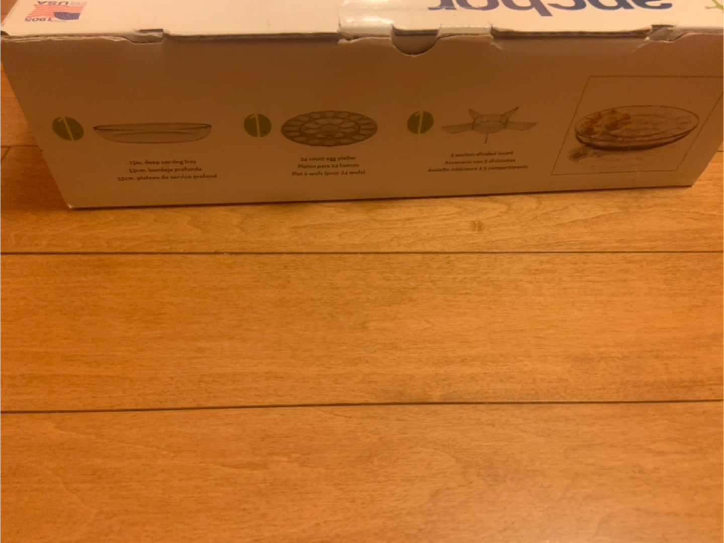 Selling a brand new Anchor 3-piece entertainment set, still in its original box! It includes a 12-inch deep serving tray, a 14-count egg platter, and a 3-section divided insert. Perfect for your next gathering!