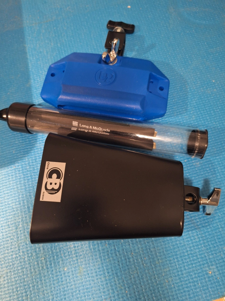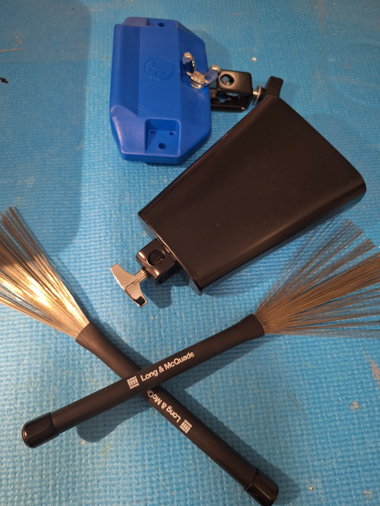 Used LP Percussion cowbell and block. Includes two pairs of L& McQ wire brushes. Good condition. Forget Trump...what we need is more cowbell to quench that fever.Make your kit complete.