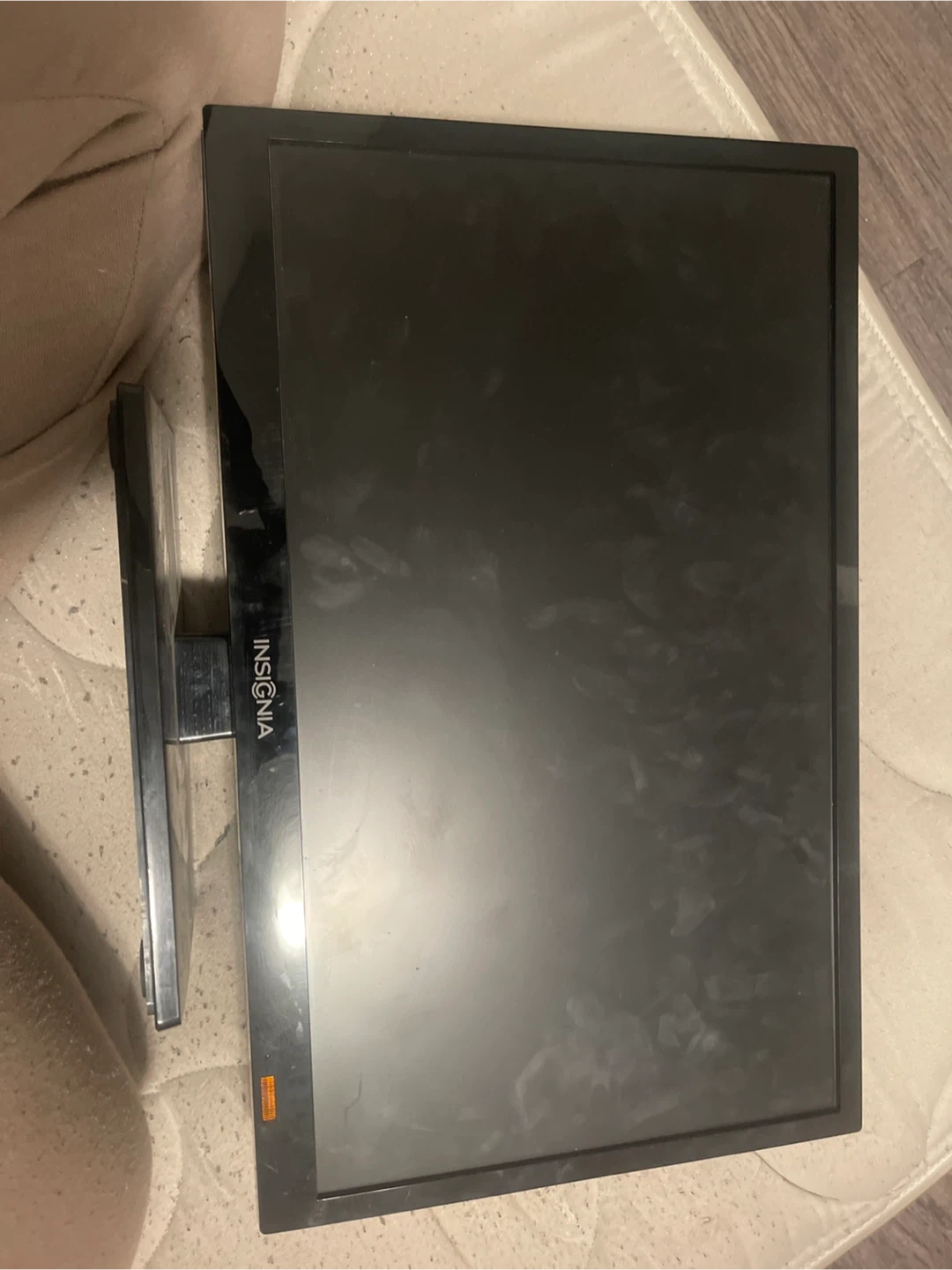 This is an Insignia 19-inch LED TV. It's a black flat screen with a stand. The TV has HDMI, DVI, VGA, and USB inputs.