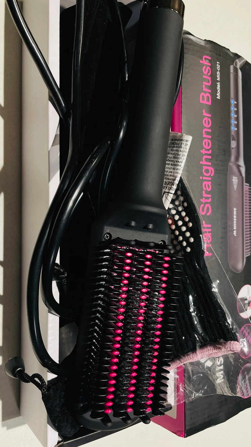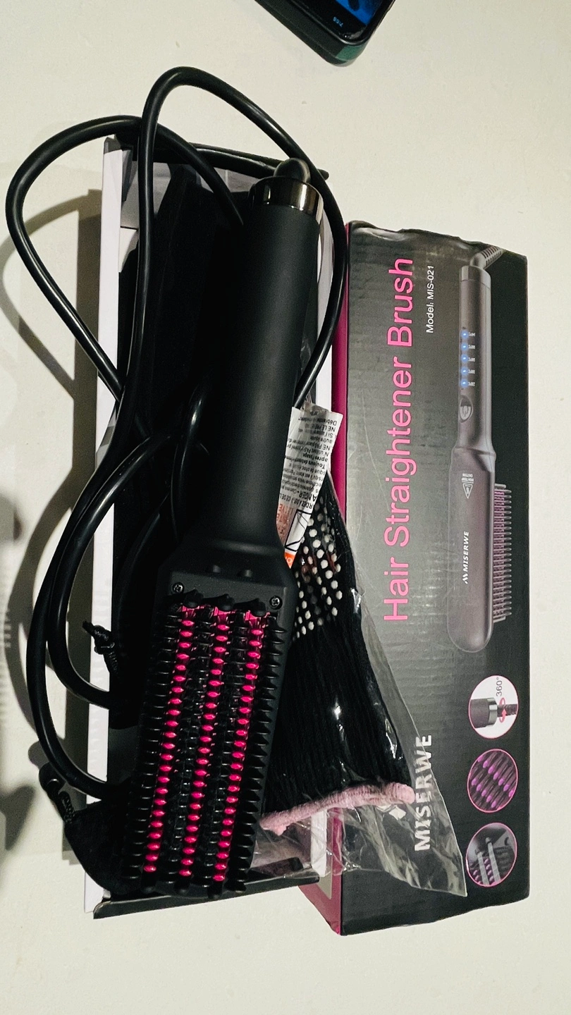 Selling a Miserwe hair straightener brush, model MIS-021! It comes with the original box and in great condition. Perfect for quick and easy hair styling!