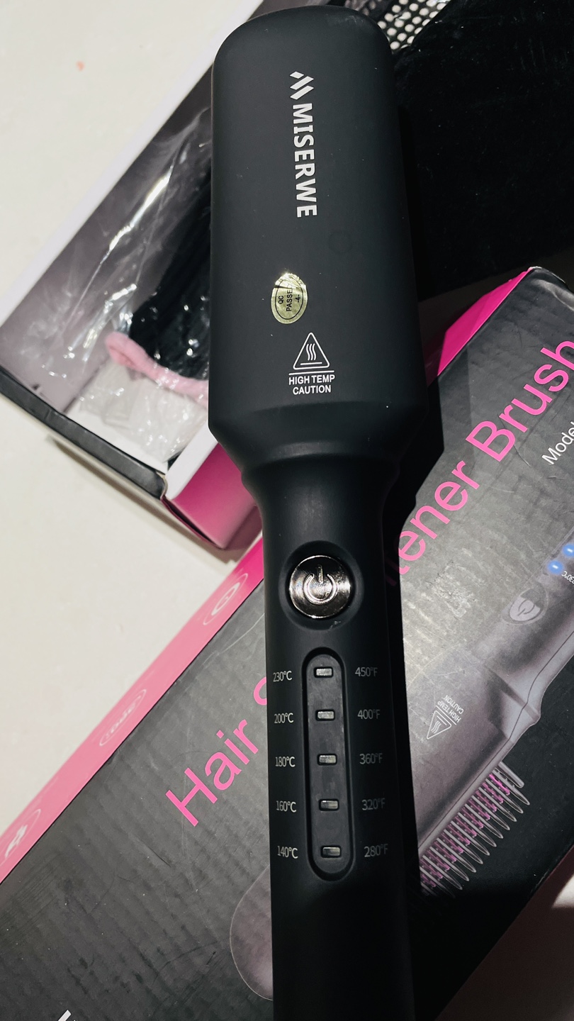 Selling a Miserwe hair straightener brush, model MIS-021! It comes with the original box and in great condition. Perfect for quick and easy hair styling!