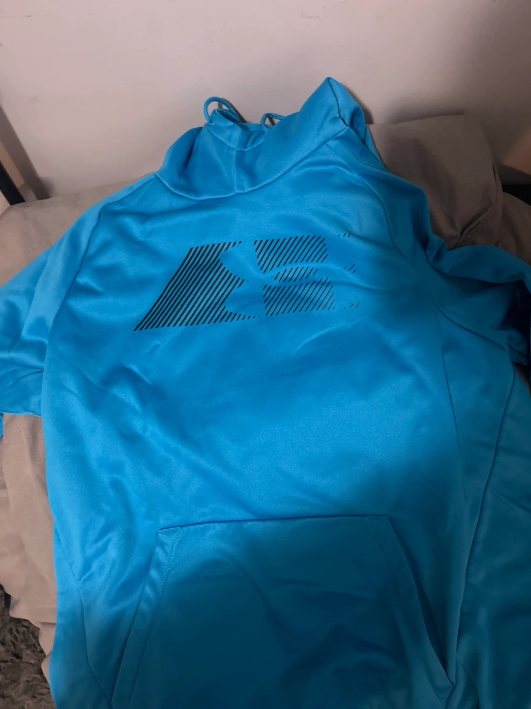 Selling a blue Under Armour hoodie in size medium! It's in great condition and ready for a new owner. Perfect for staying warm during workouts or just lounging around never worn either fluffy and new