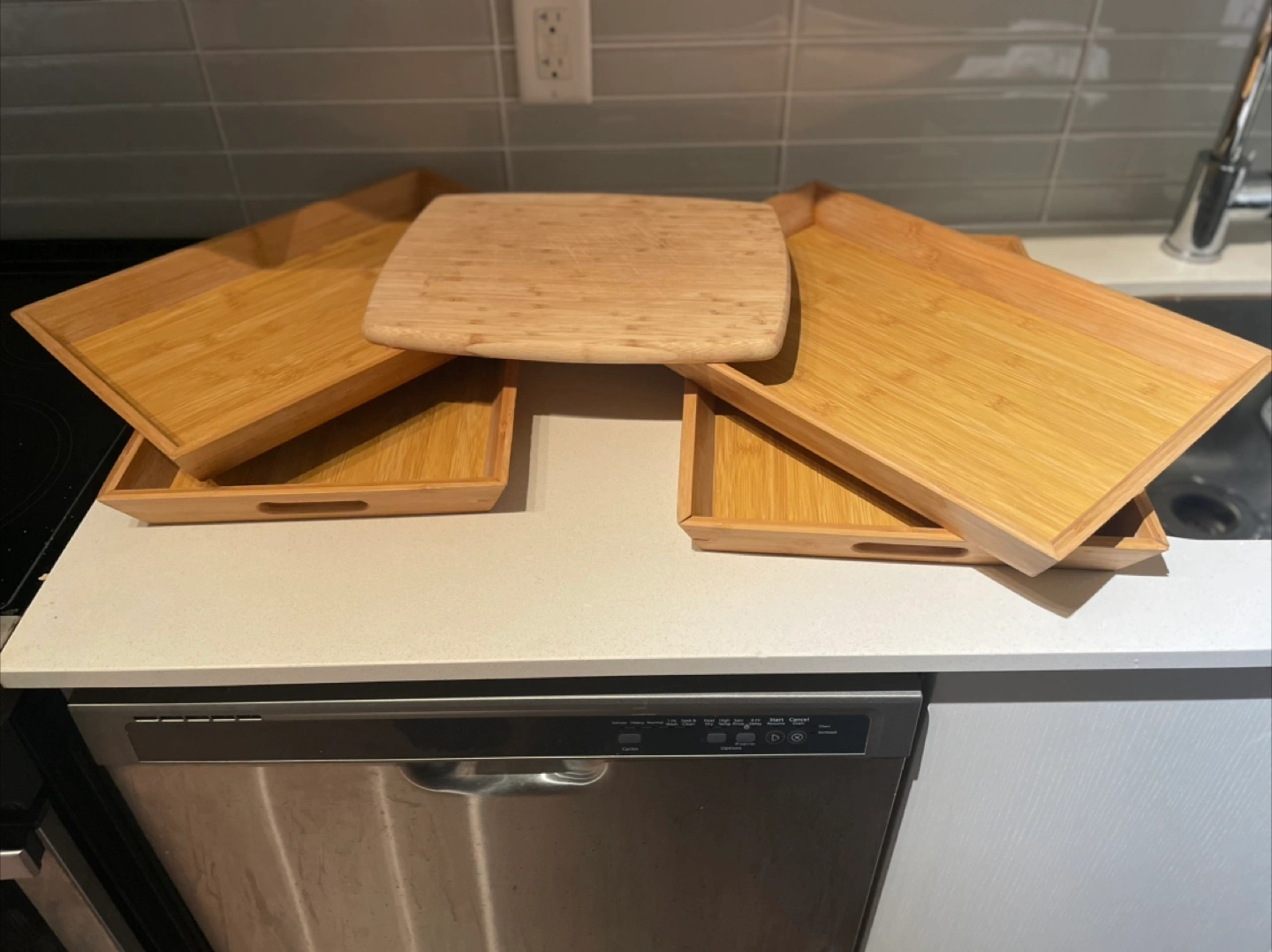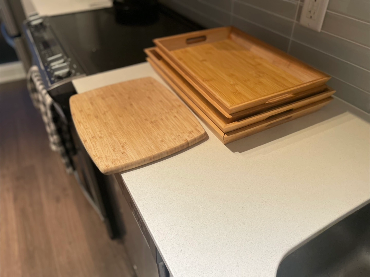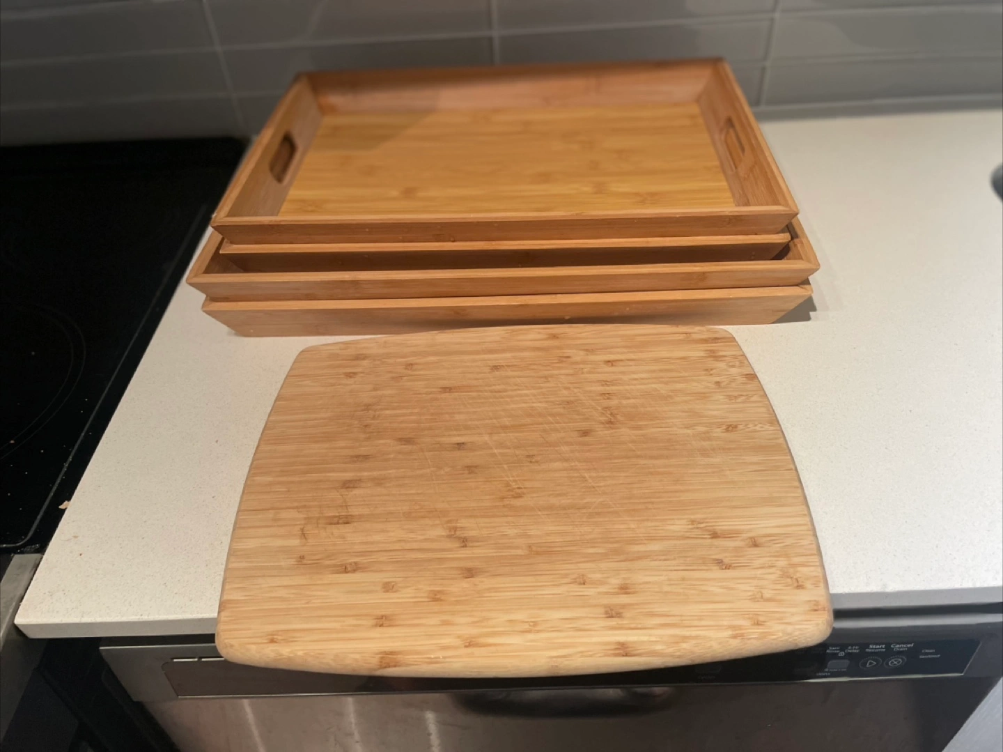 Bamboo Trays and Cutting Board Set