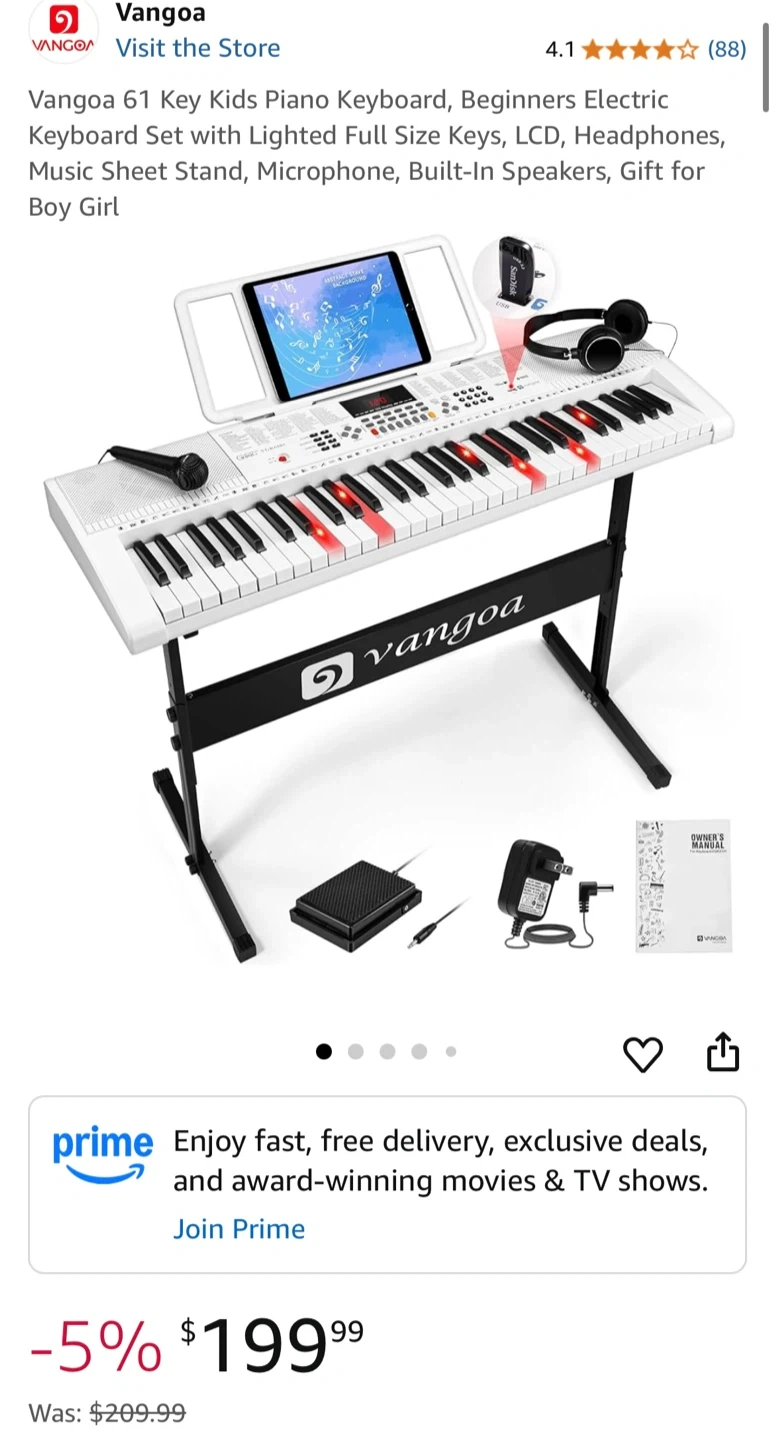 Selling a Vangoa 61 Key Kids Piano Keyboard, model VGK6101. It's a beginner's electric keyboard set with full-size keys, and built-in speakers. Perfect for anyone looking to start learning piano! ONLY selling the Keyboard and stand with the charger. Pickup location is Warden and Steeles.