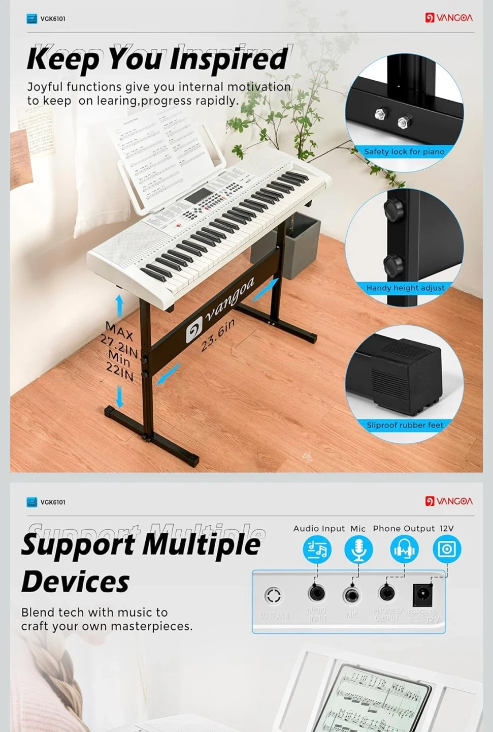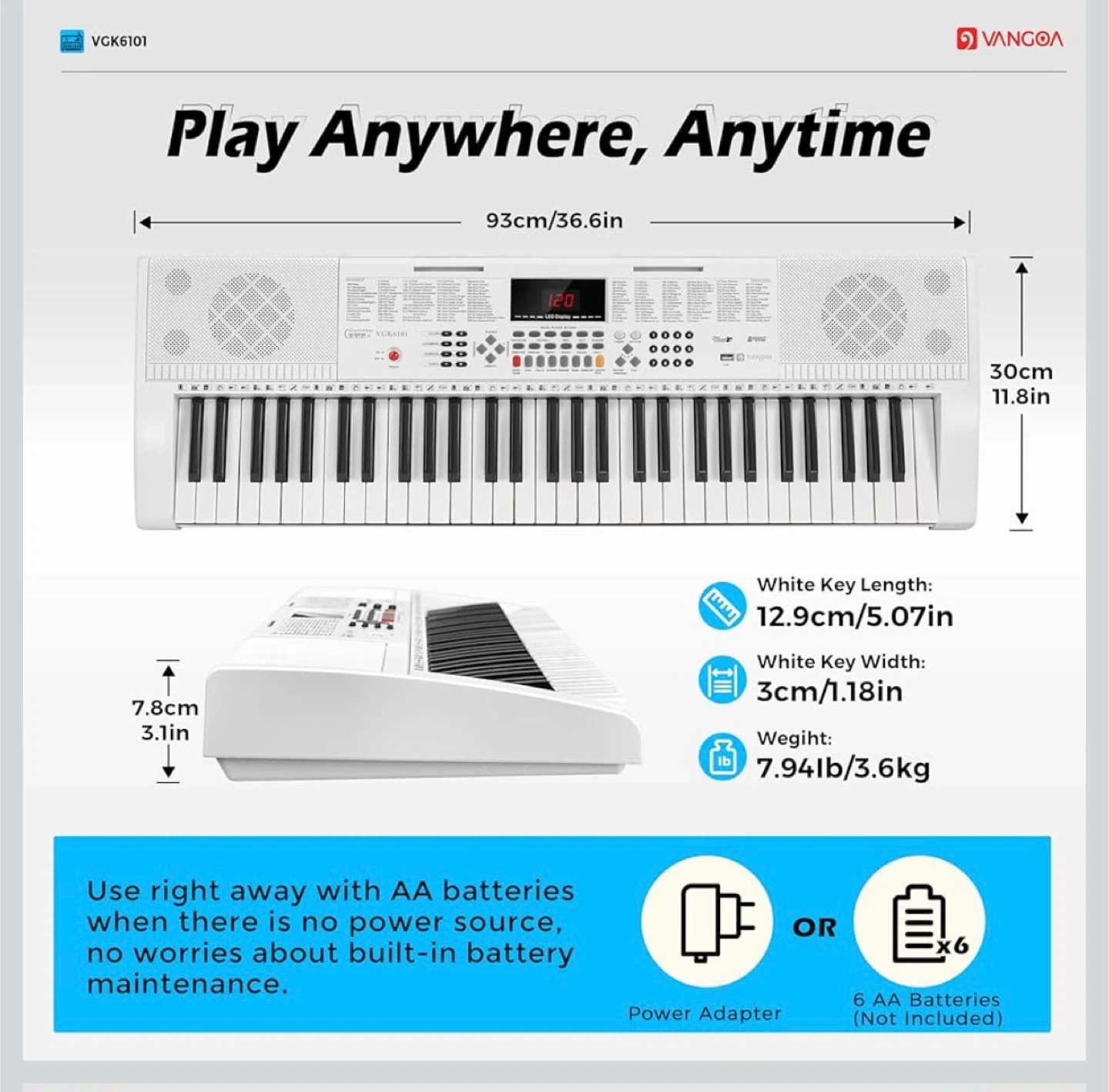 Vangoa VGK6101 61 Key Piano Keyboard