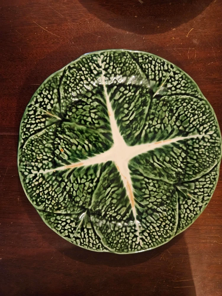 Selling a lovely Bordallo Pinheiro cabbage place setting! It's in great condition and would look beautiful on any table. The plates, in two sizes, and bowls have a unique design and texture that mimics the look of a cabbage leaf. A charming addition to your dining collection