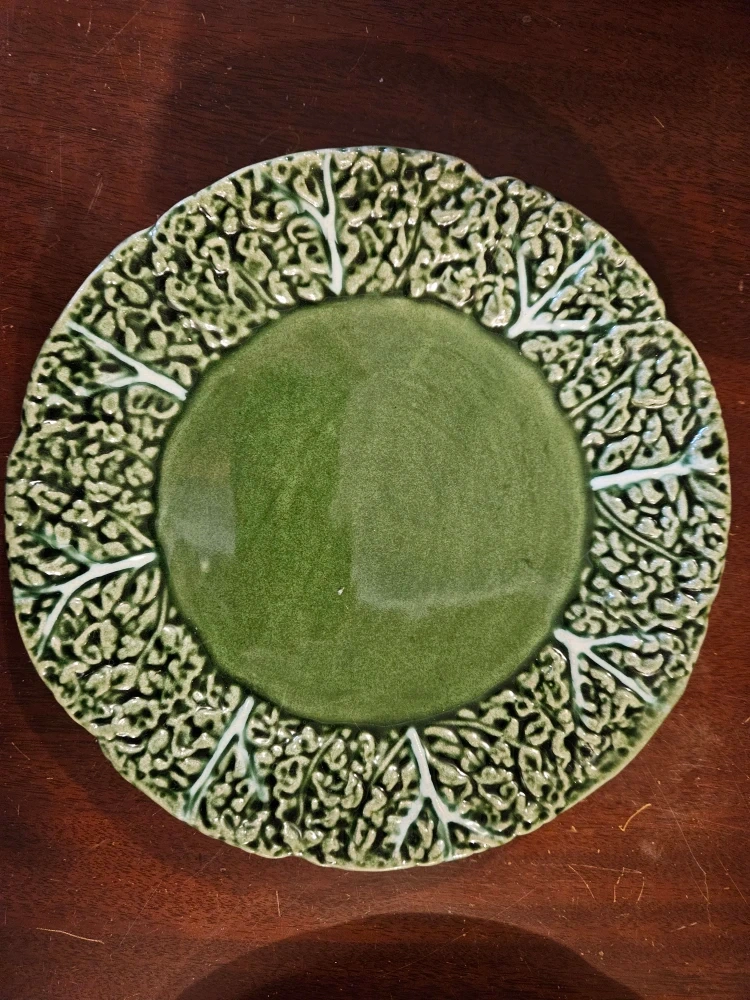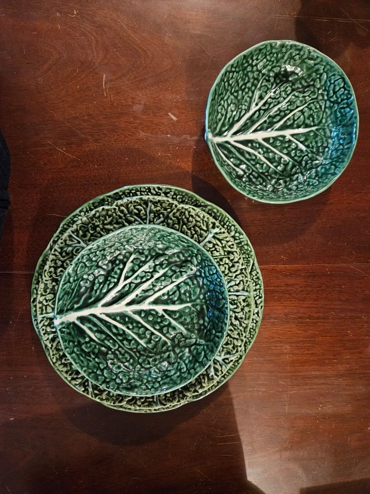 Selling a lovely Bordallo Pinheiro cabbage place setting! It's in great condition and would look beautiful on any table. The plates, in two sizes, and bowls have a unique design and texture that mimics the look of a cabbage leaf. A charming addition to your dining collection