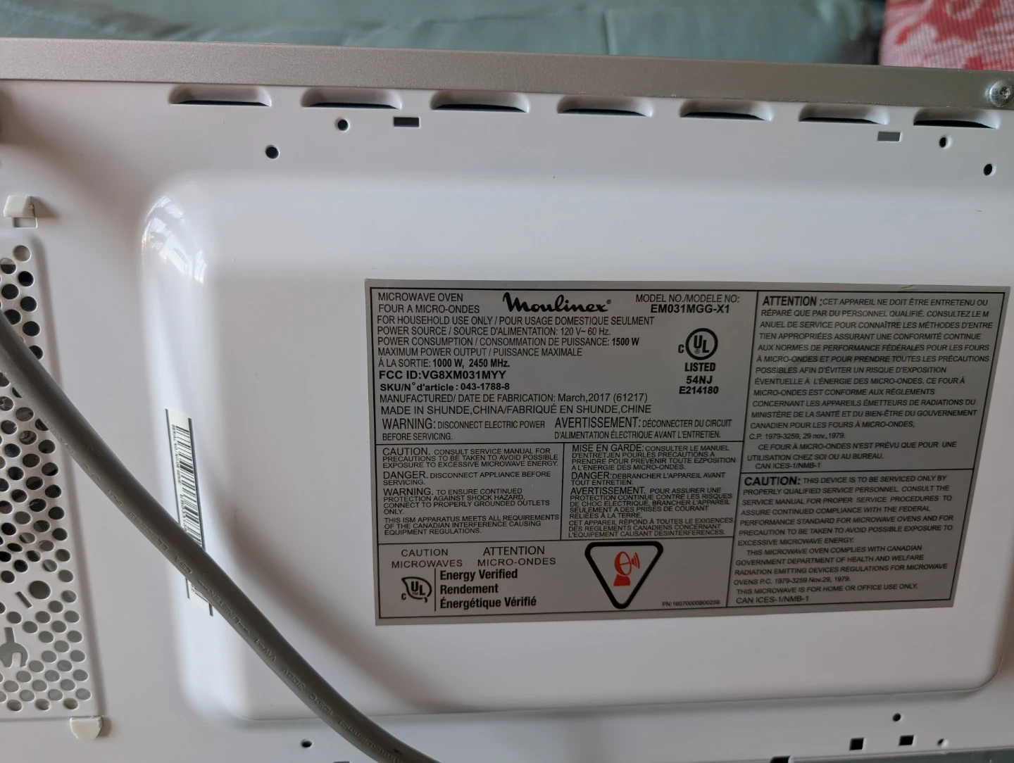 Model: EMO31MGG-X1 (manufactured 2017) – reliable and fully functional.