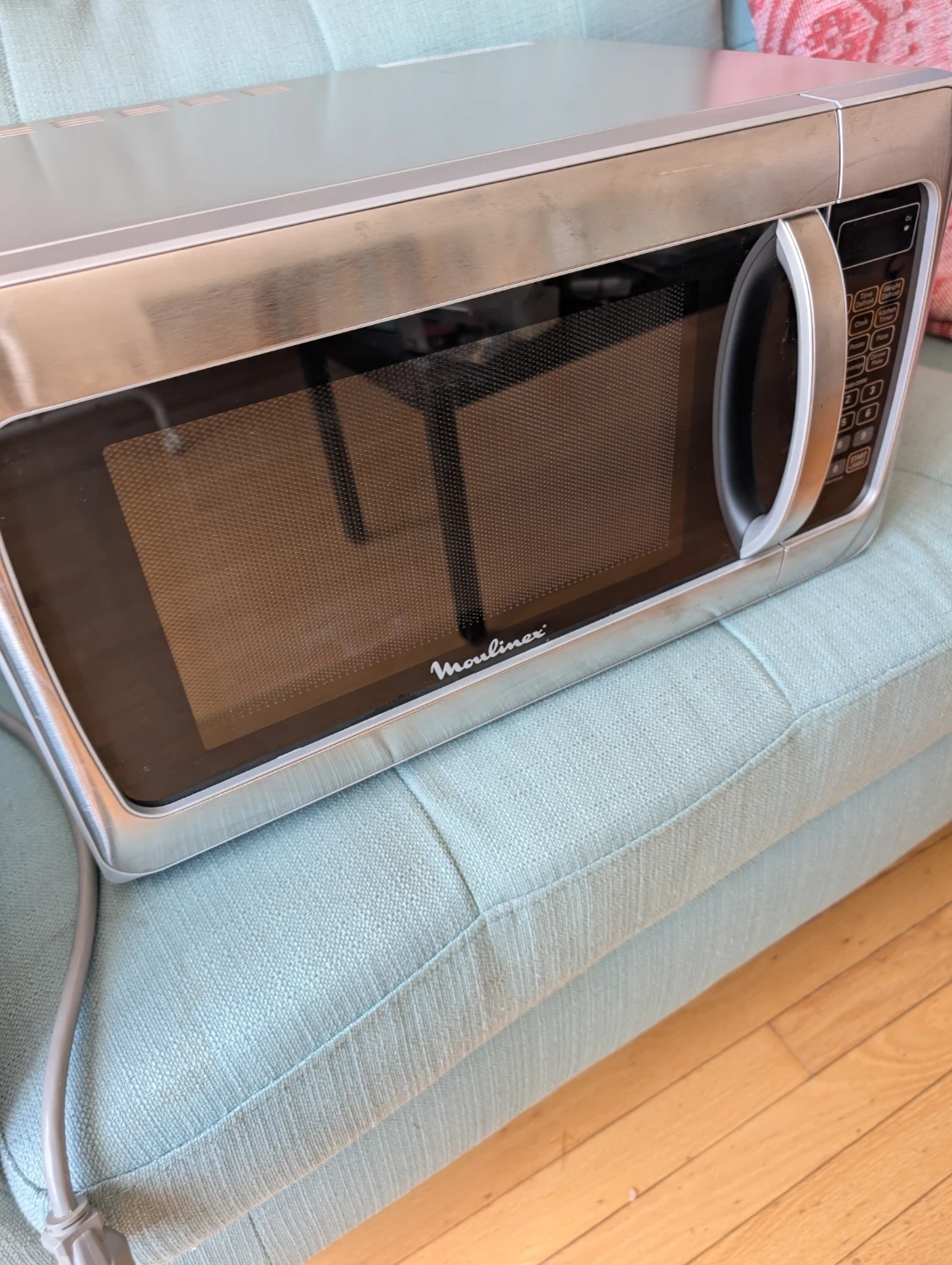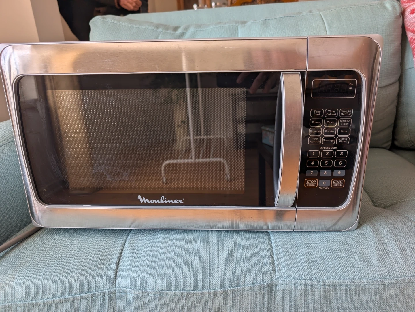 Similar new Moulinex or comparable 1.1 cu.ft. / 1000W stainless microwaves sell for $100–$200+.