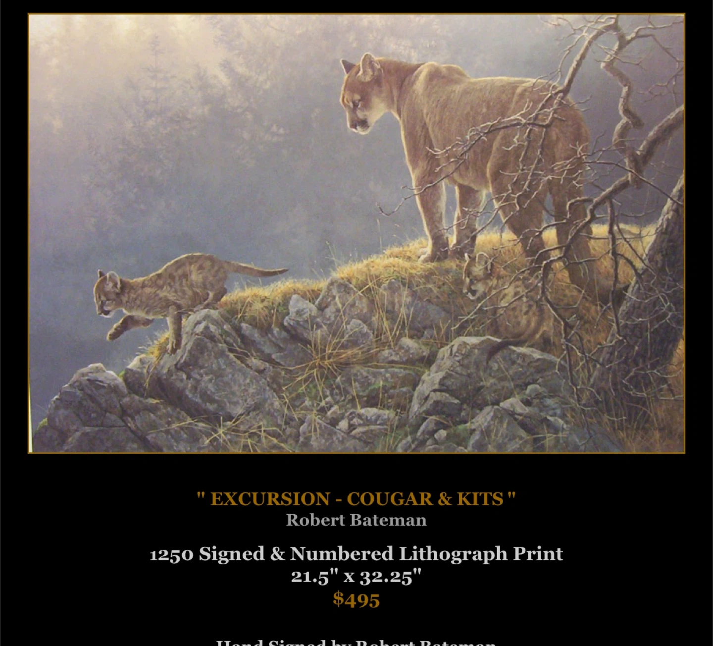 Robert Bateman "EXCURSION - COUGAR & KITS" Lithograph Print