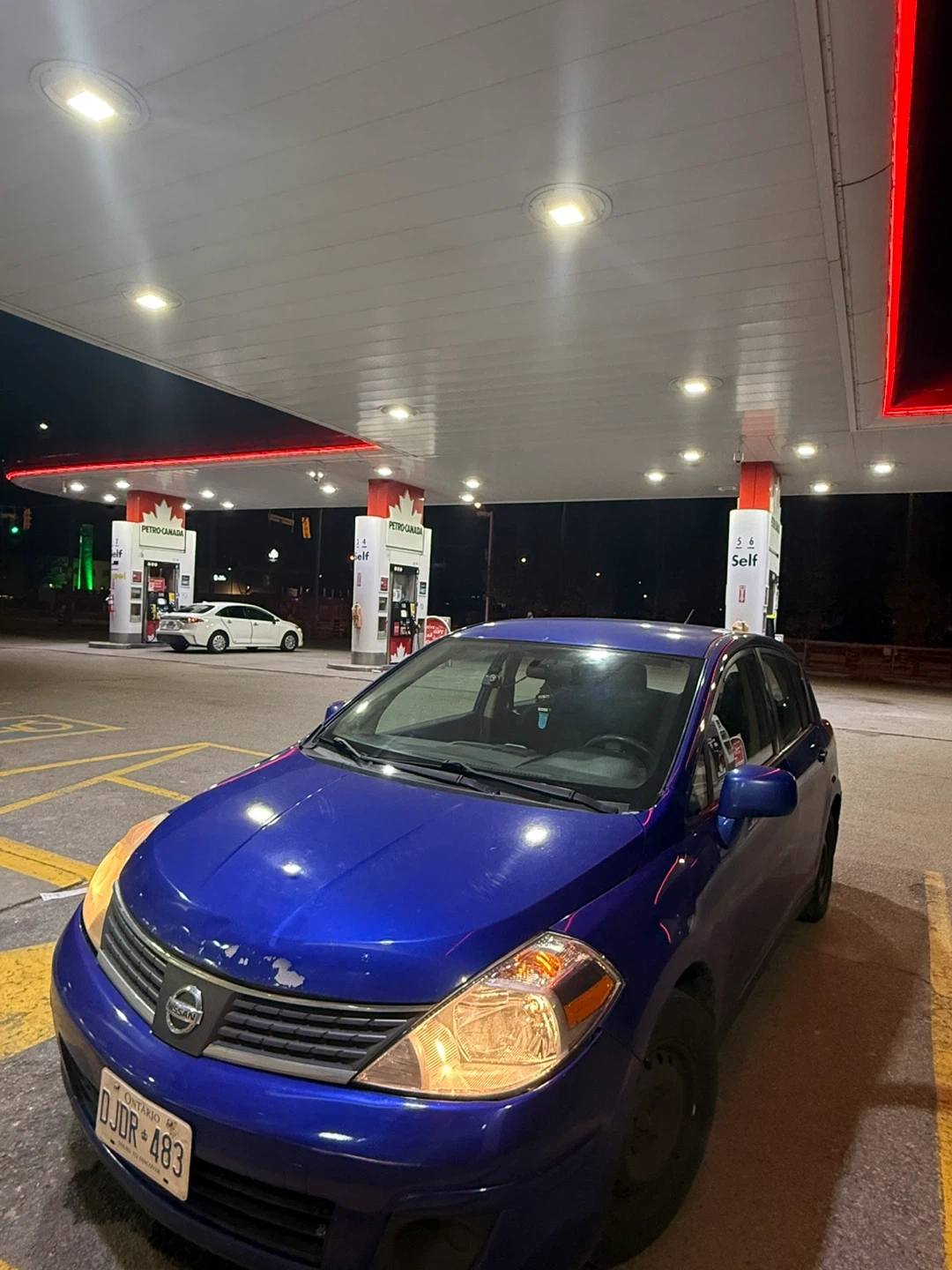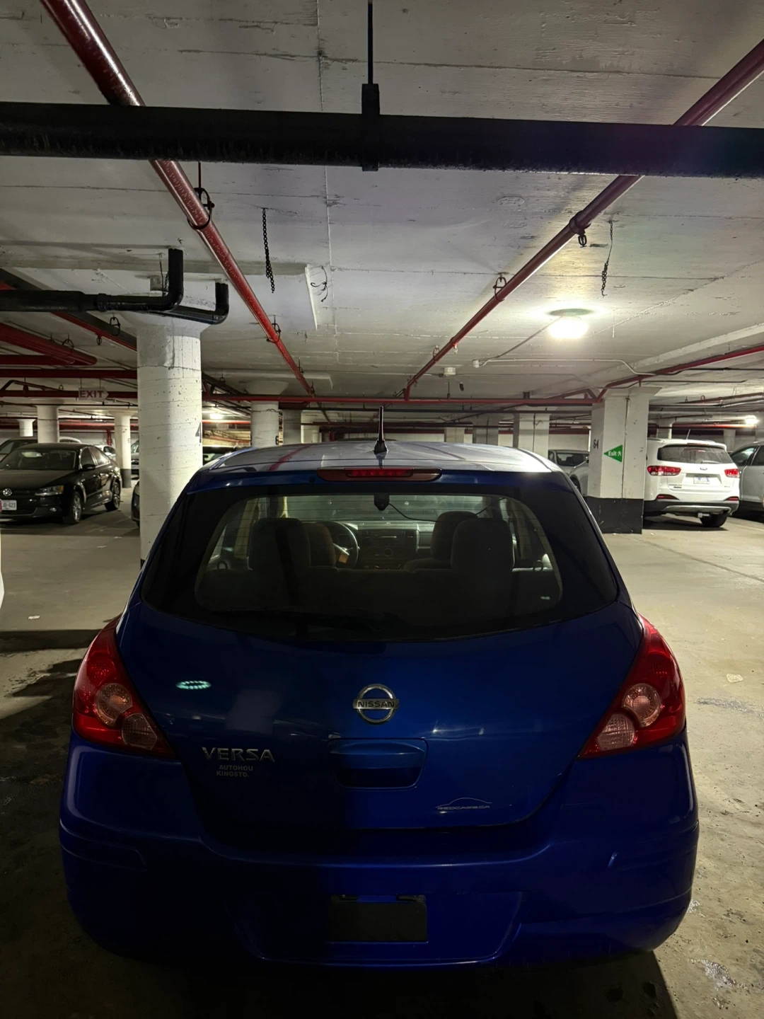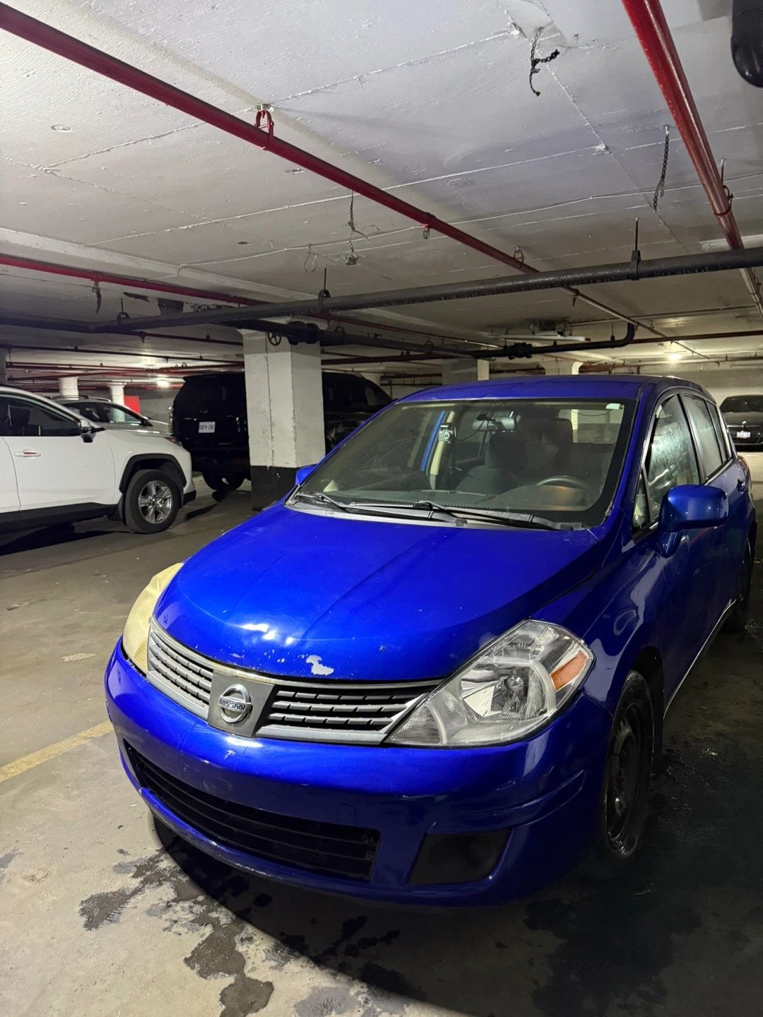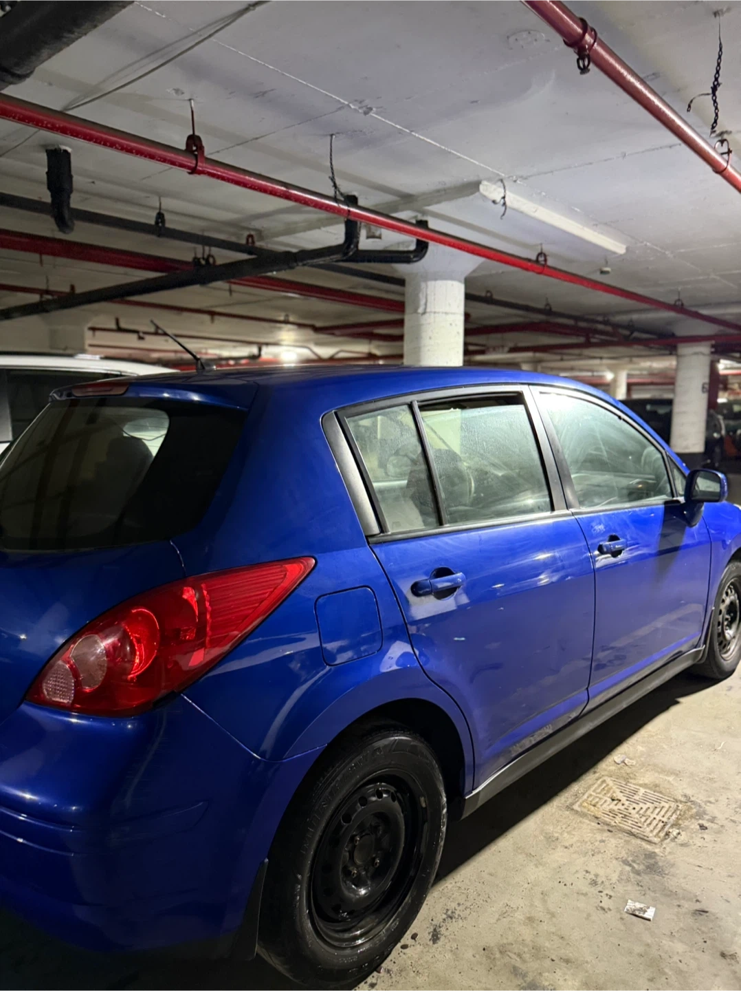 Selling a blue Nissan Versa hatchback. It shows signs of use. The car is great, it doesn't need anything for safety, new battery, new oil change, new spark plug, new coil, new engine ears, and new exhaust system, I just bought winter wheels, I can negotiate the price.
