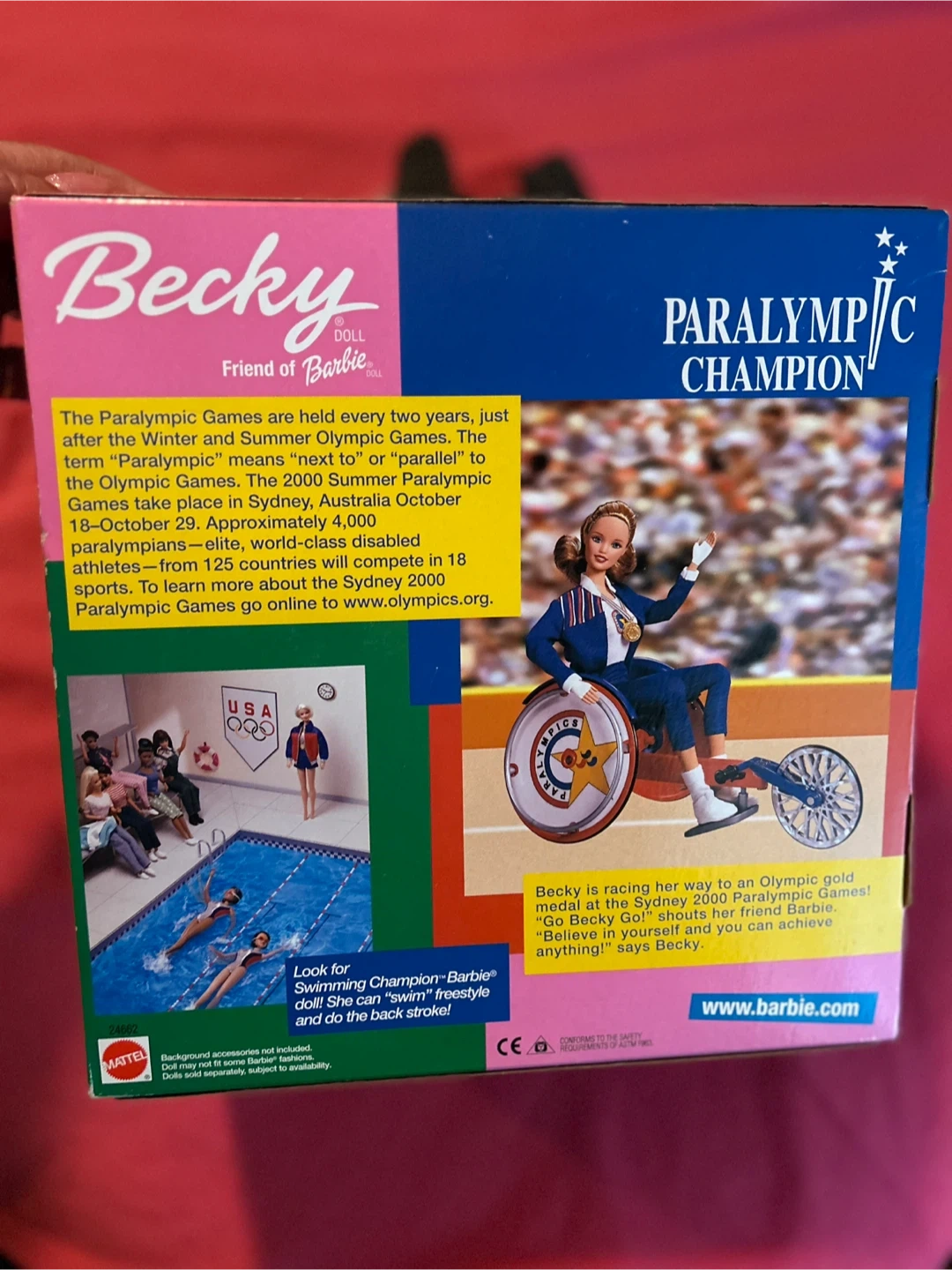 This is the Barbie "Paralympic Champion" Becky doll, friend of Barbie. It's from the 2000 Sydney Paralympic Games. Includes wheelchair and racing attire.