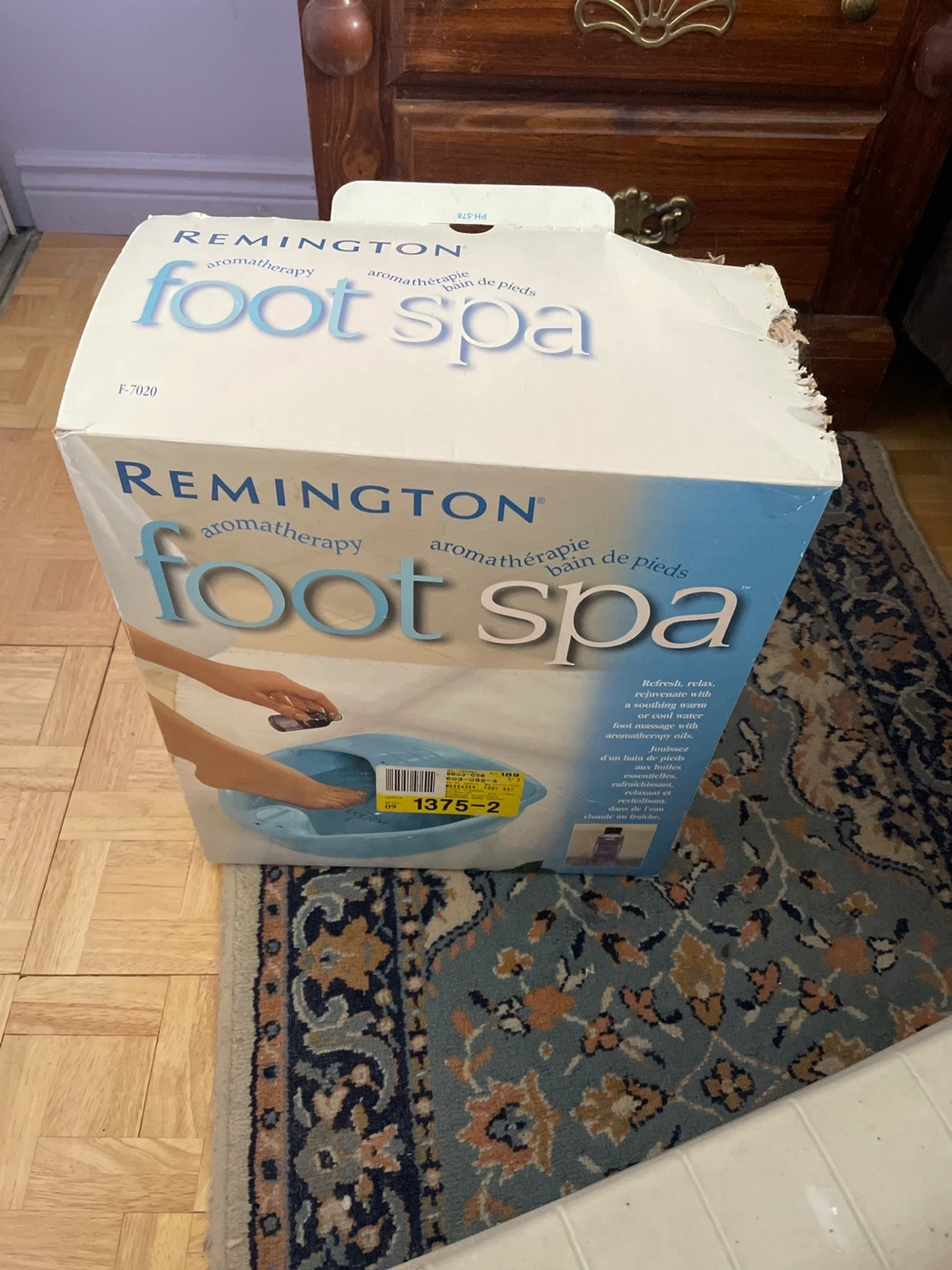 This is a Remington aromatherapy foot spa. It's designed to refresh, relax, and rejuvenate with soothing warm or cool water foot massage. It can be used with aromatherapy oils for an enhanced experience. My mom never used it because she didn’t like the idea of carrying water into the living room.