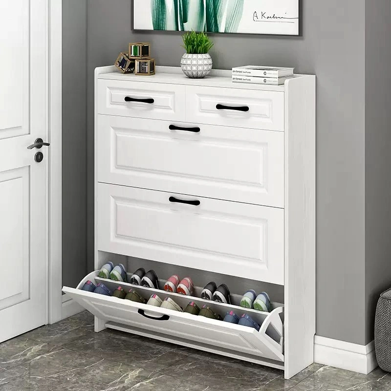 Transform your home with this contemporary shoe cabinet, the ultimate in modern shoe storage. This ultra-thin shoe cabinet boasts an impressive storage capacity, perfect for small spaces. Its sleek design ensures your shoes are always neatly organized and easily accessible.