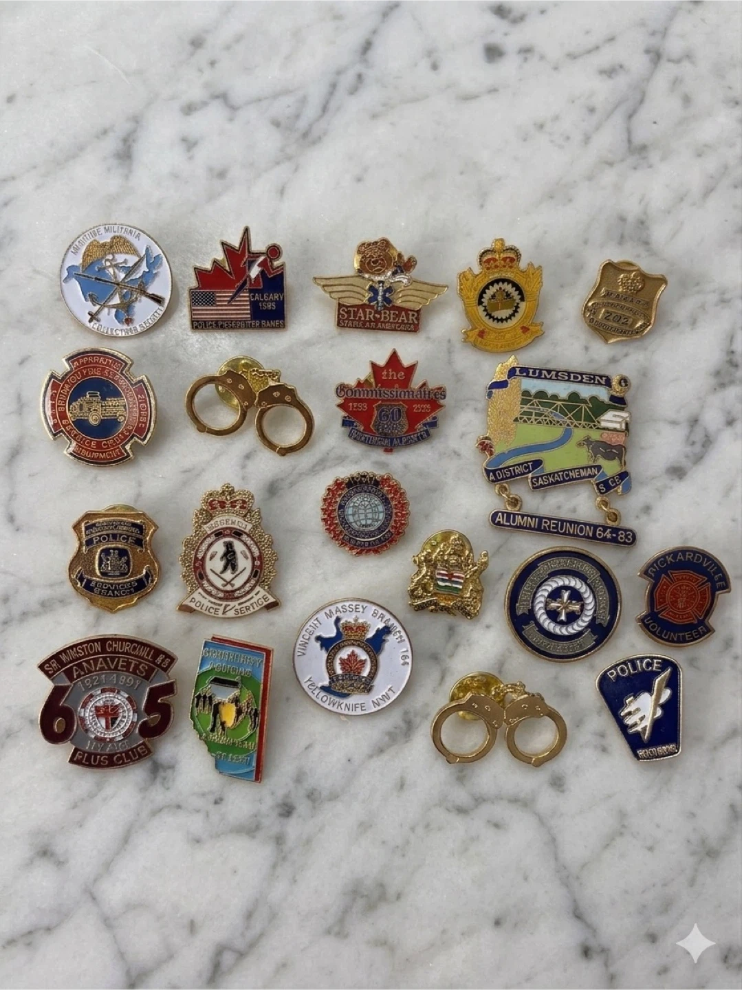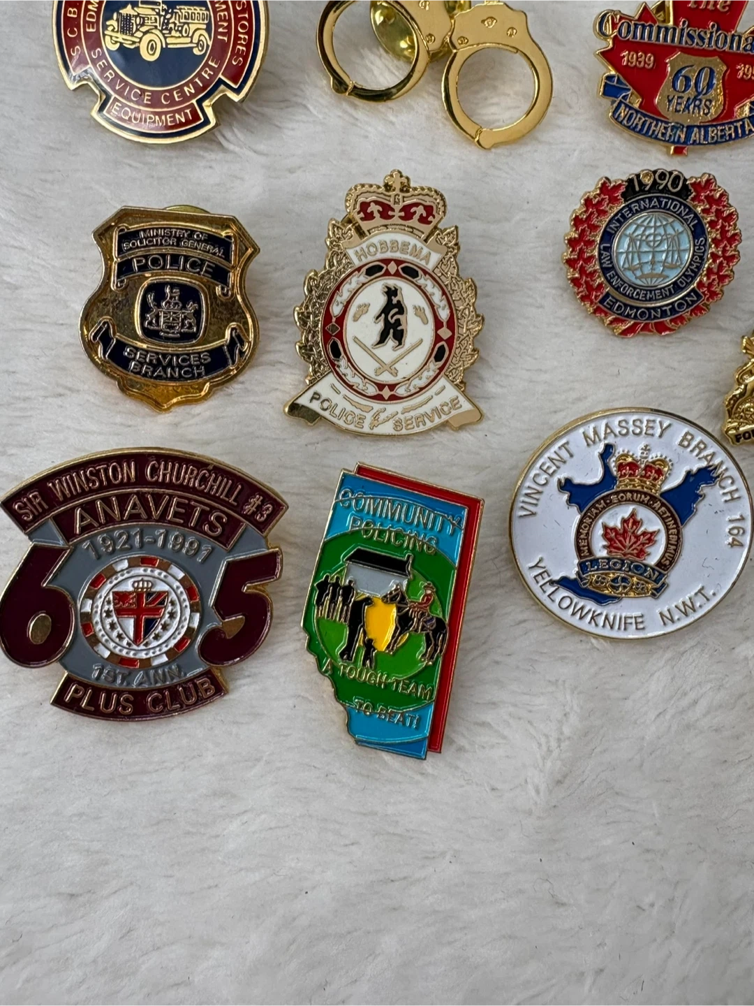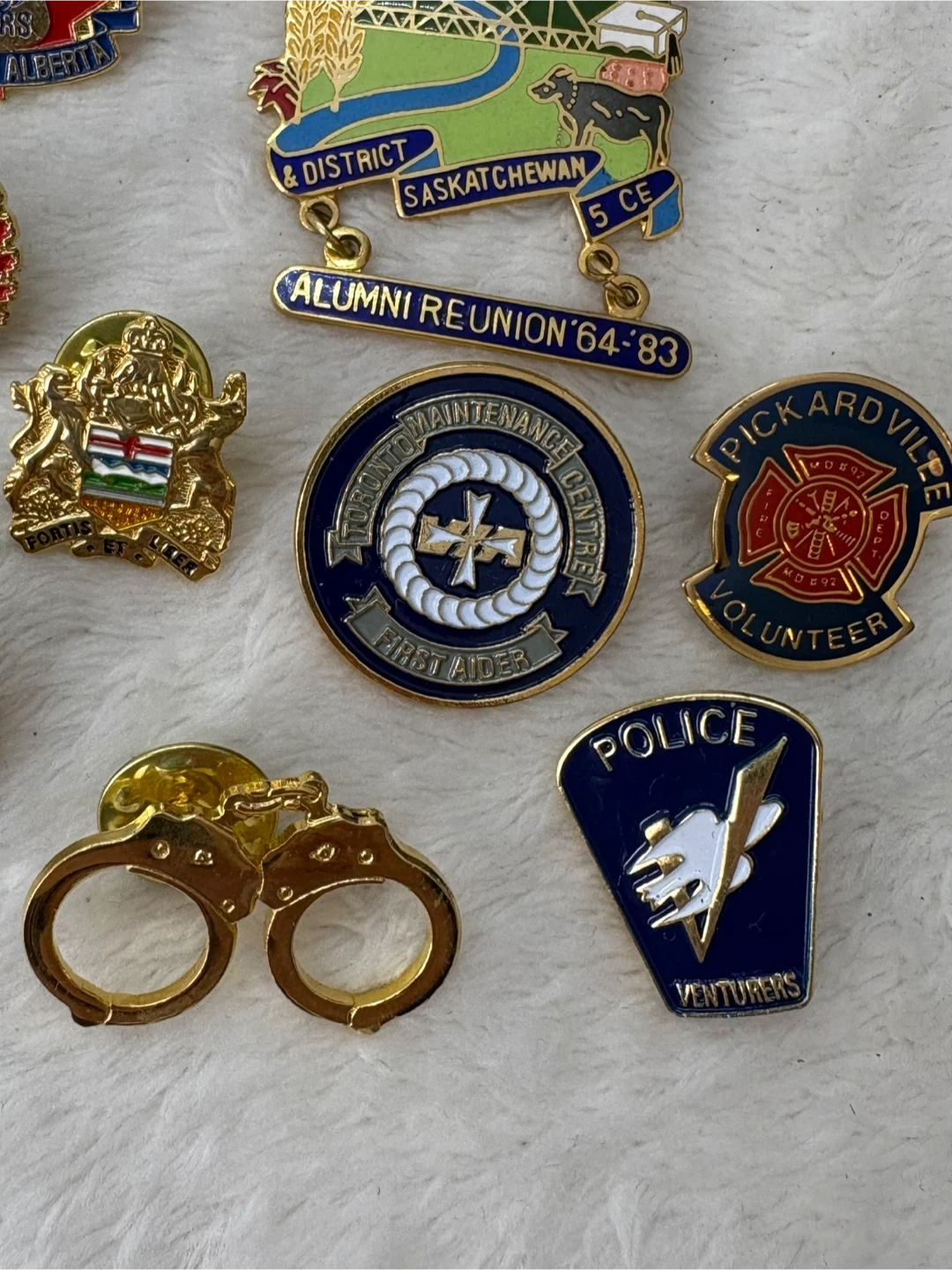 Vintage, Canadian, Police, Firefighter, EMS, Lapel Pins, Badges, Collection, Lot, Alberta, Saskatchewan, Edmonton, Calgary, Hobbema, Yellowknife, Legion, ANAVETS, First, Responder, Memorabilia