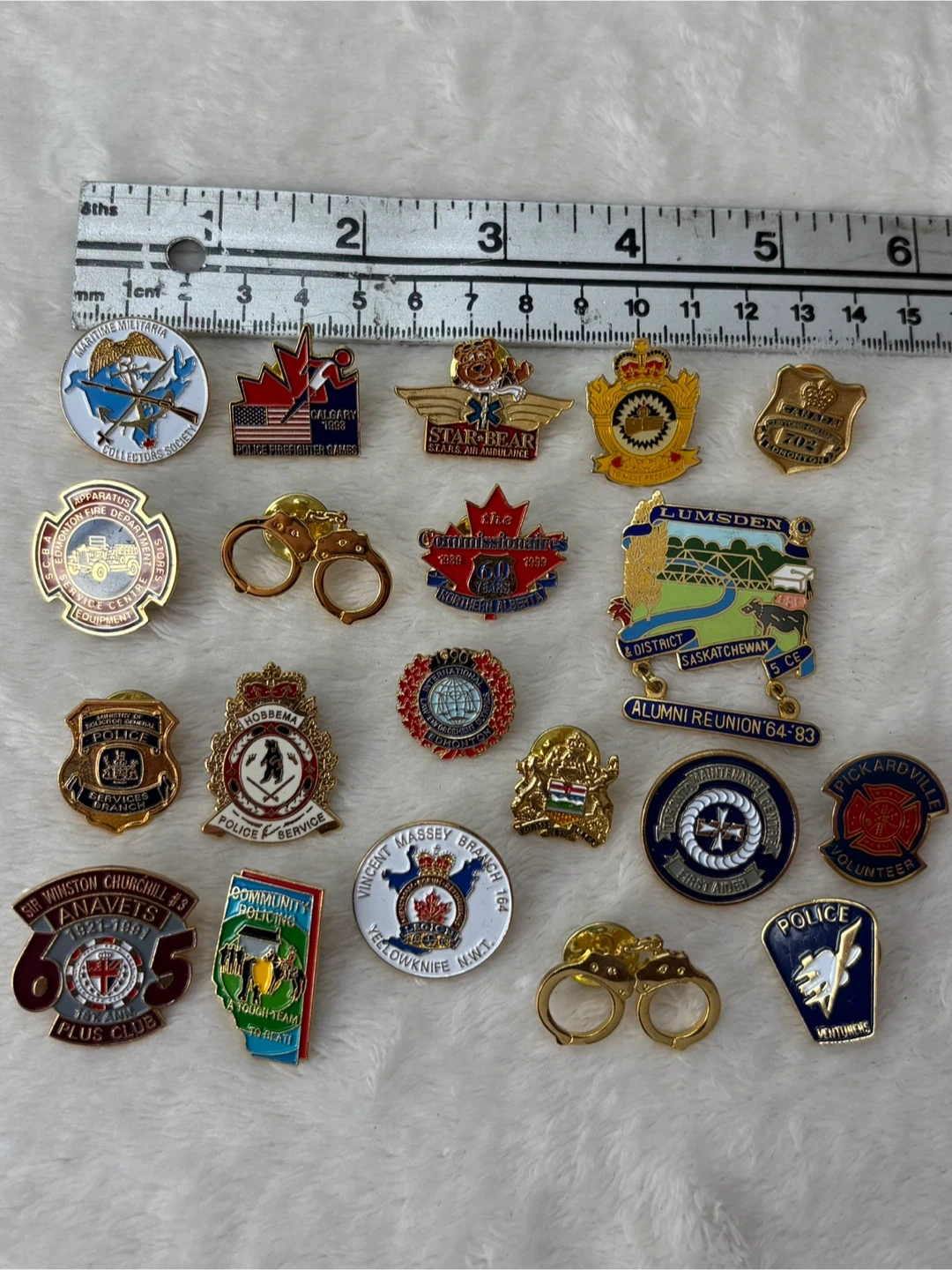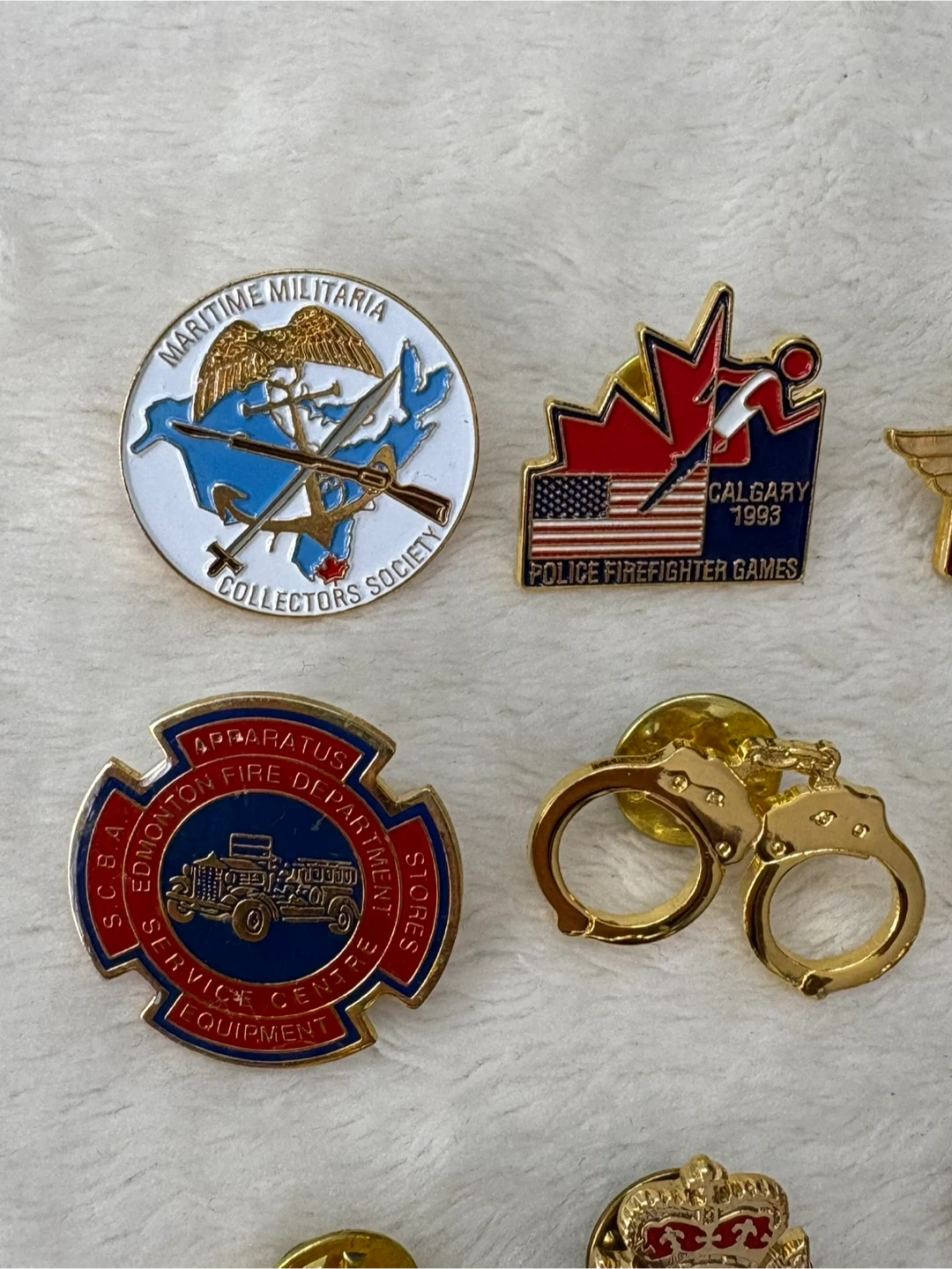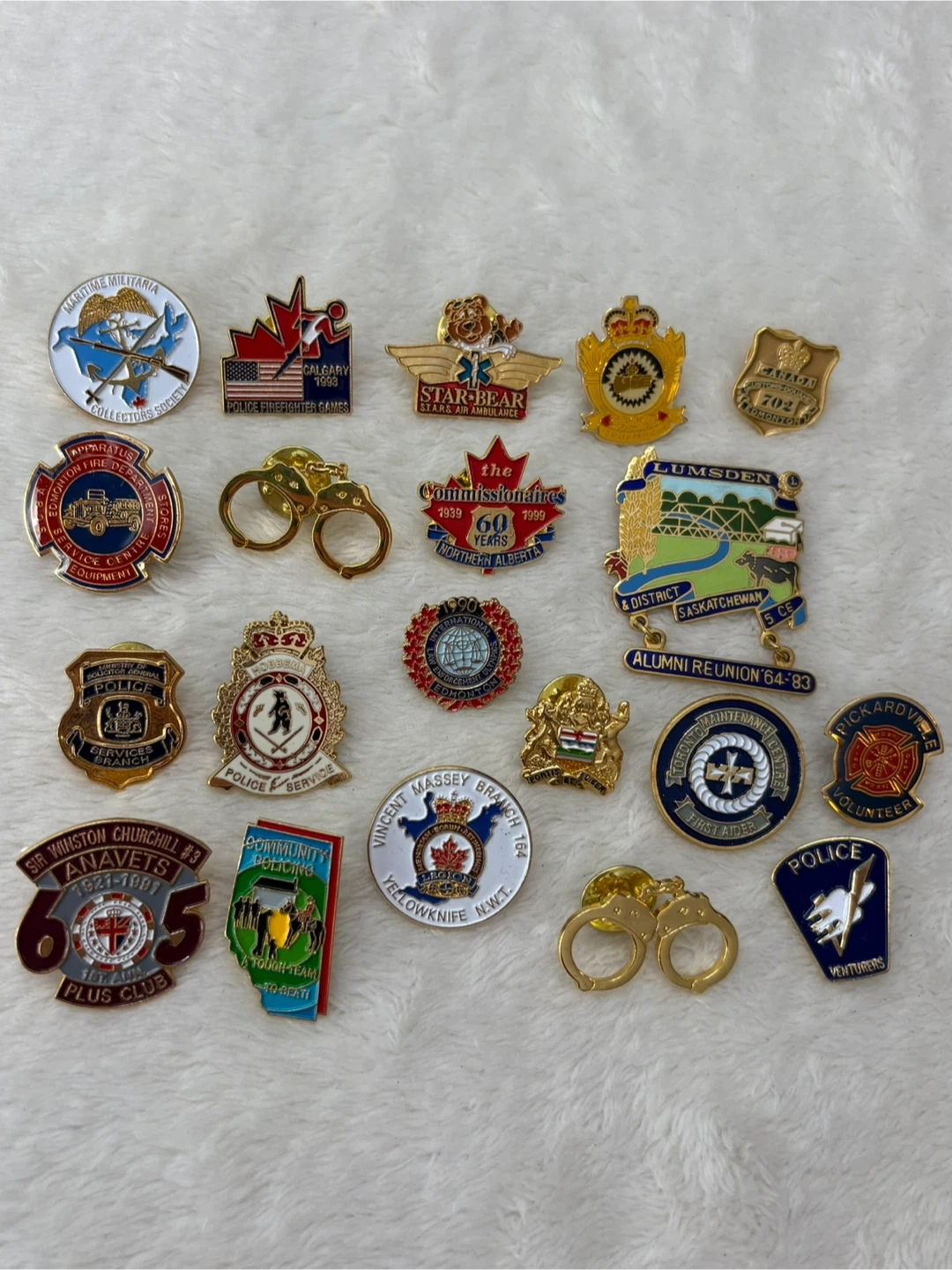 Vintage, Canadian, Police, Firefighter, EMS, Lapel Pins, Badges, Collection, Lot, Alberta, Saskatchewan, Edmonton, Calgary, Hobbema, Yellowknife, Legion, ANAVETS, First, Responder, Memorabilia