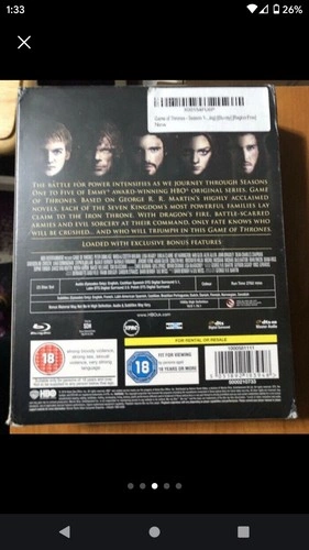 Dive into the epic fantasy world of Westeros with "Game of Thrones - The Complete Seasons 1-5" on Blu-ray. Experience the breathtaking landscapes and intense battles that have captivated audiences worldwide, all in stunning high definition. This collection is region-free, ensuring compatibility with Blu-ray players anywhere.