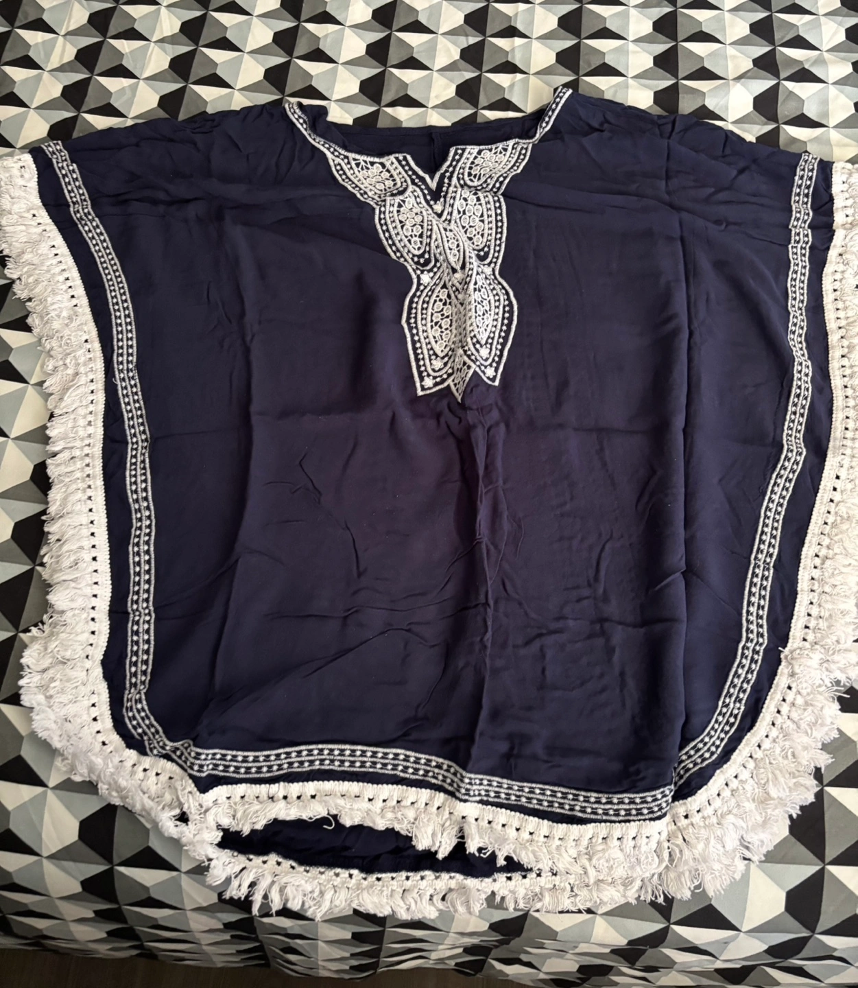 Beautiful kaftan, two included $5 each. Navy blue embroidered kaftan(New), white butterfly print kaftan(used ones). Size XXL but fits like a L. Flowy and comfortable. Perfect for summer.