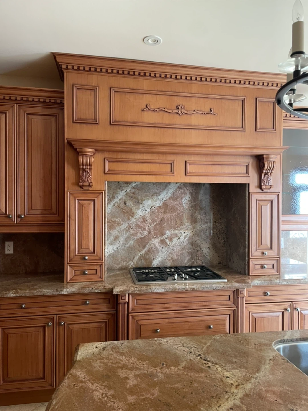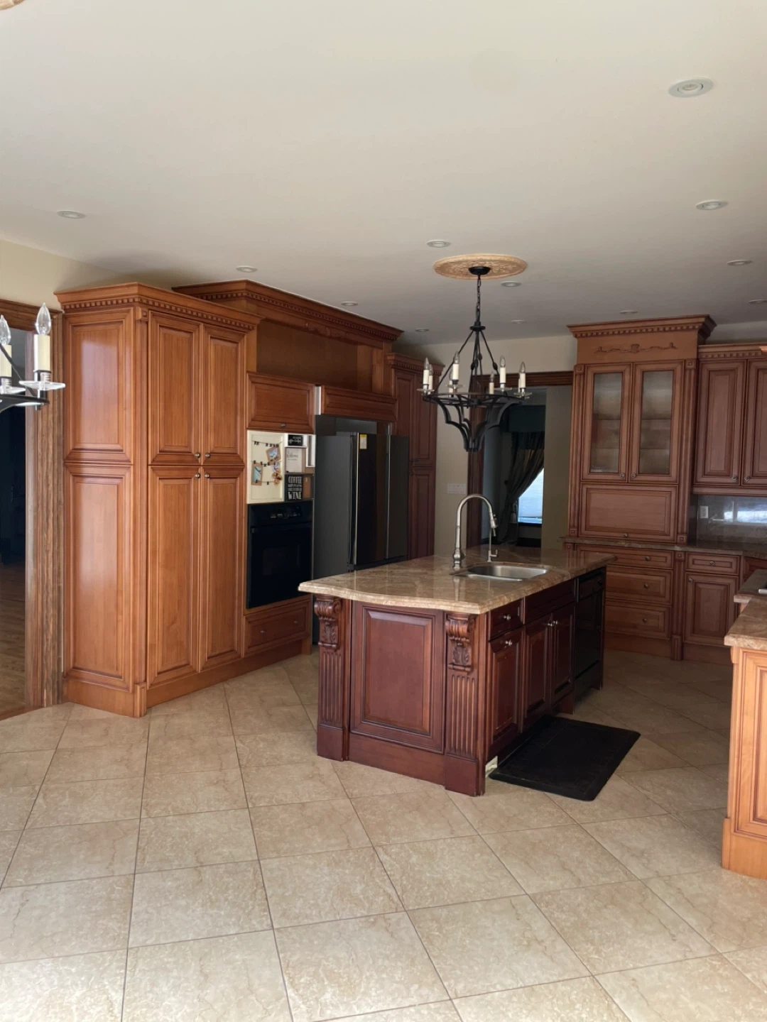 Beautiful wood kitchen cabinets with granite countertops. Includes the cooktop and wall oven. Must take it apart yourself with your own transportation. Refrigerator not included.