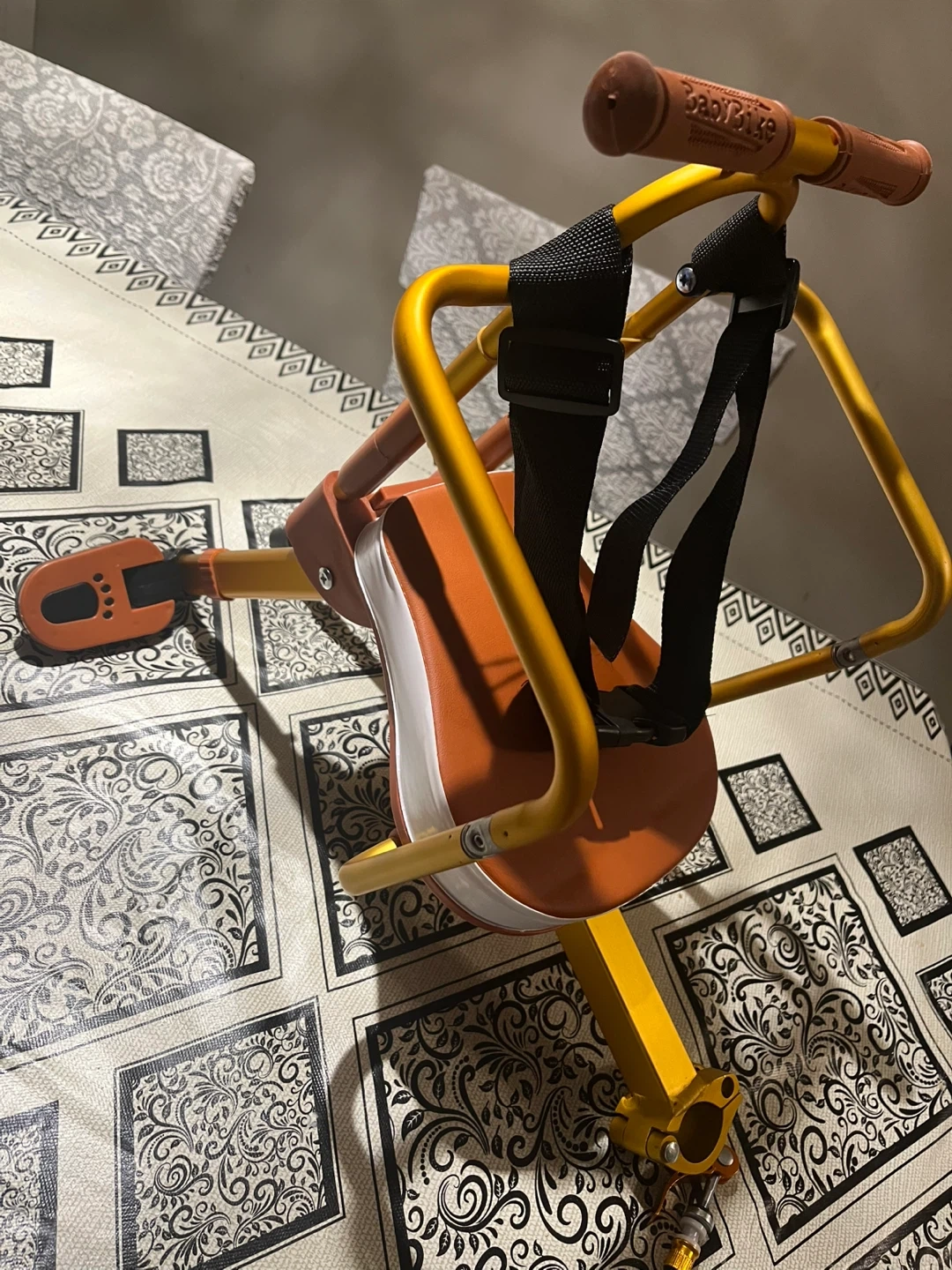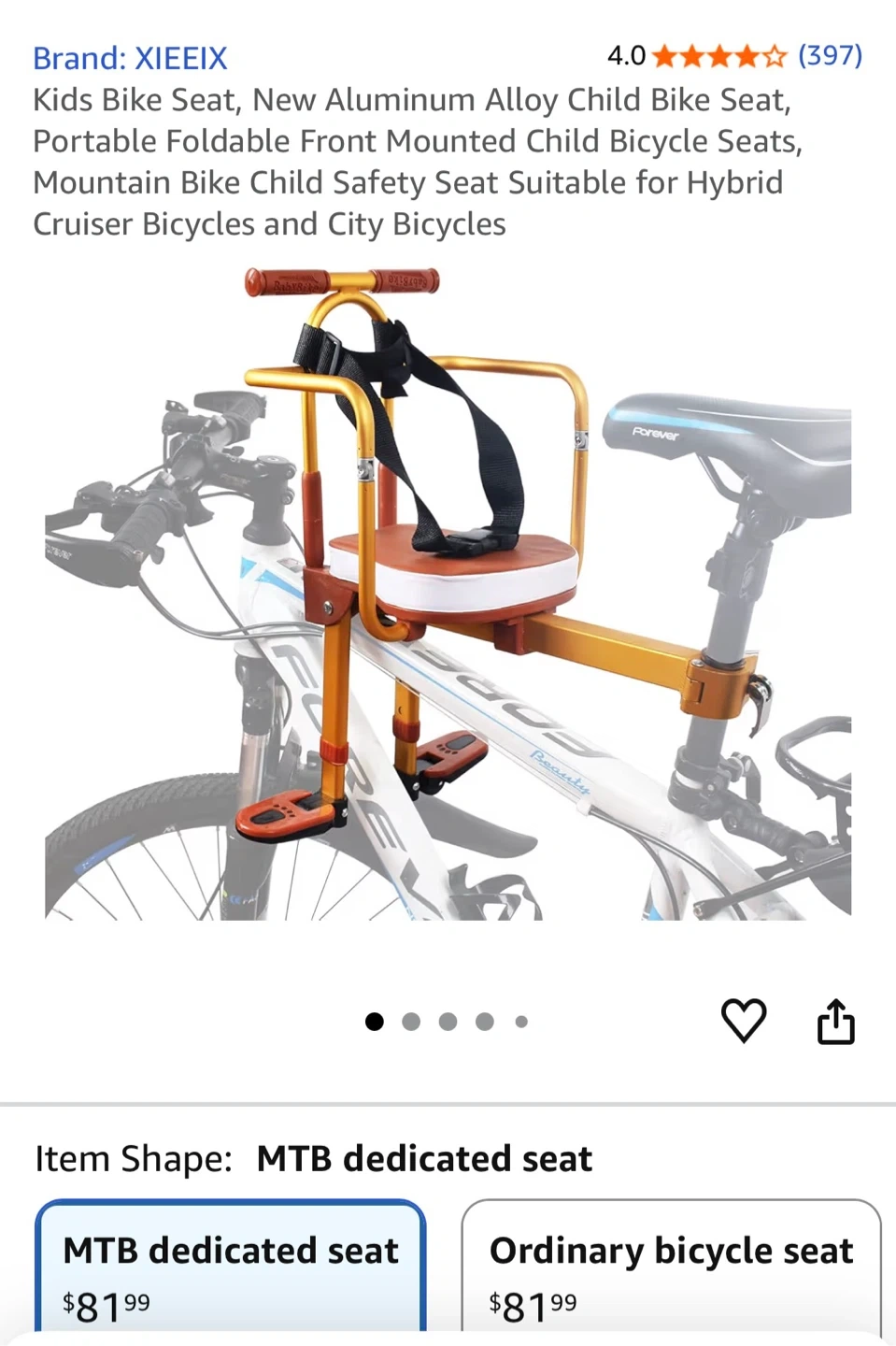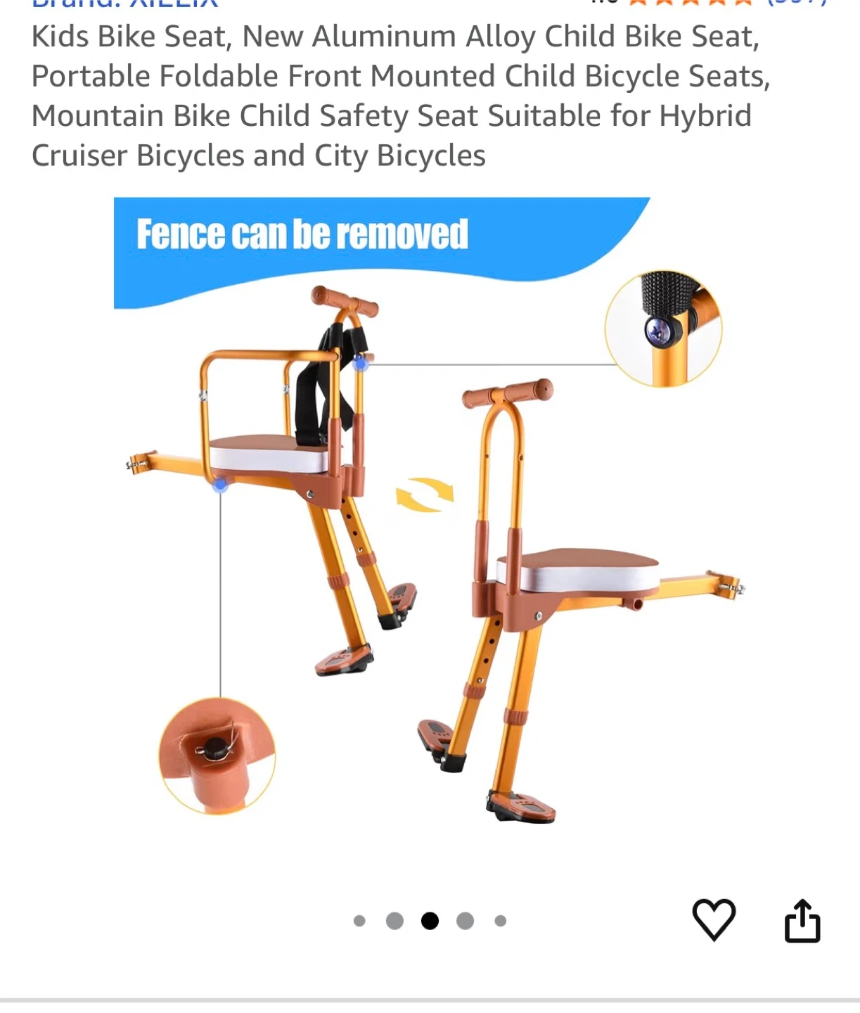 Selling a XIEEIX kids bike seat, perfect for hybrid, cruiser, and city bicycles! This is a new aluminum alloy child bike seat. It's portable and foldable, designed to be front-mounted for safety. The fence can be removed as needed for convenience